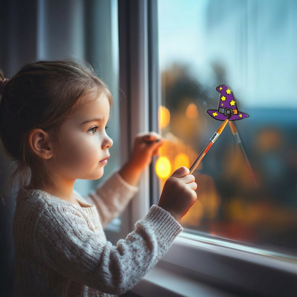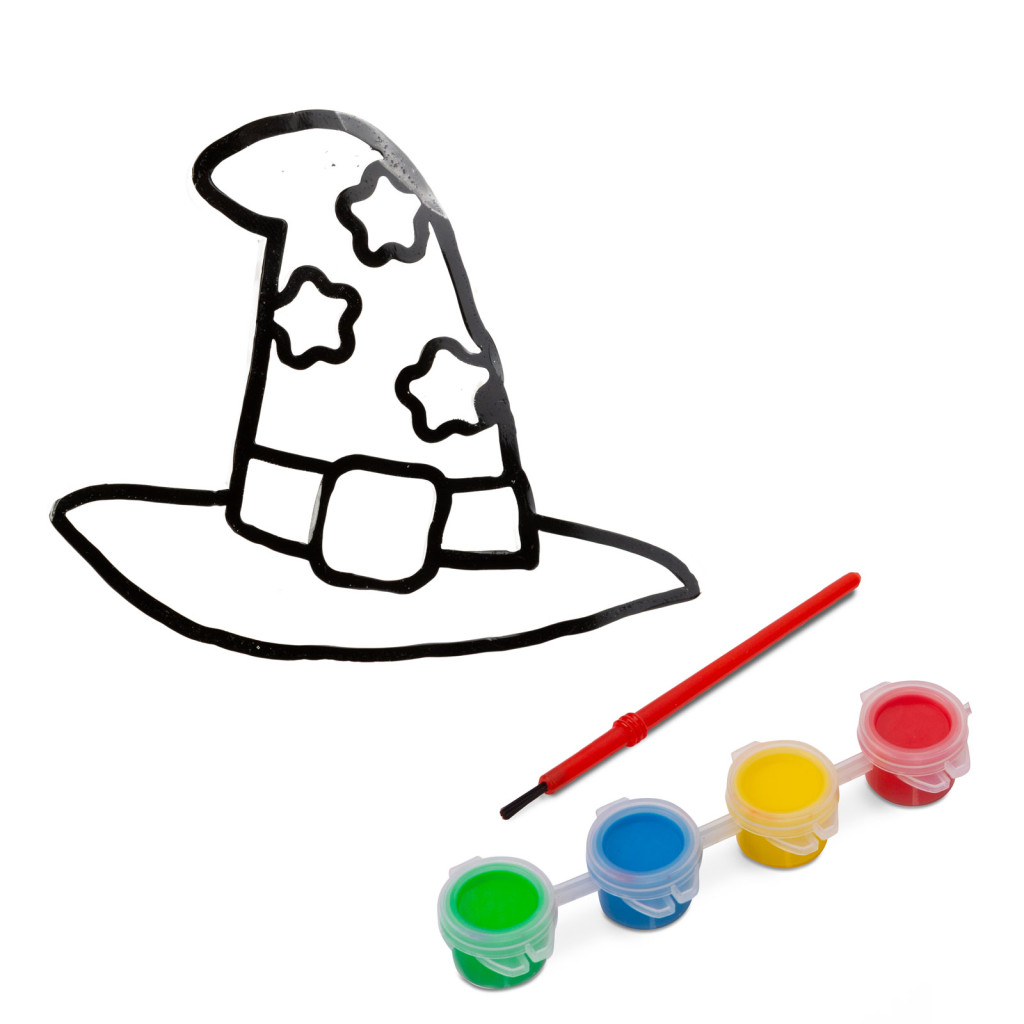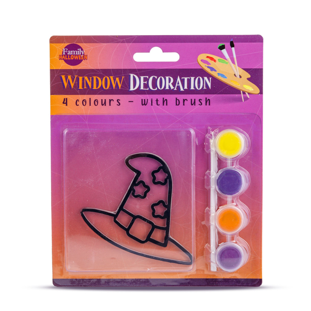 Halloween-i kifesthető ablakdekor - boszorkánykalap - 4 szín - ecsettel