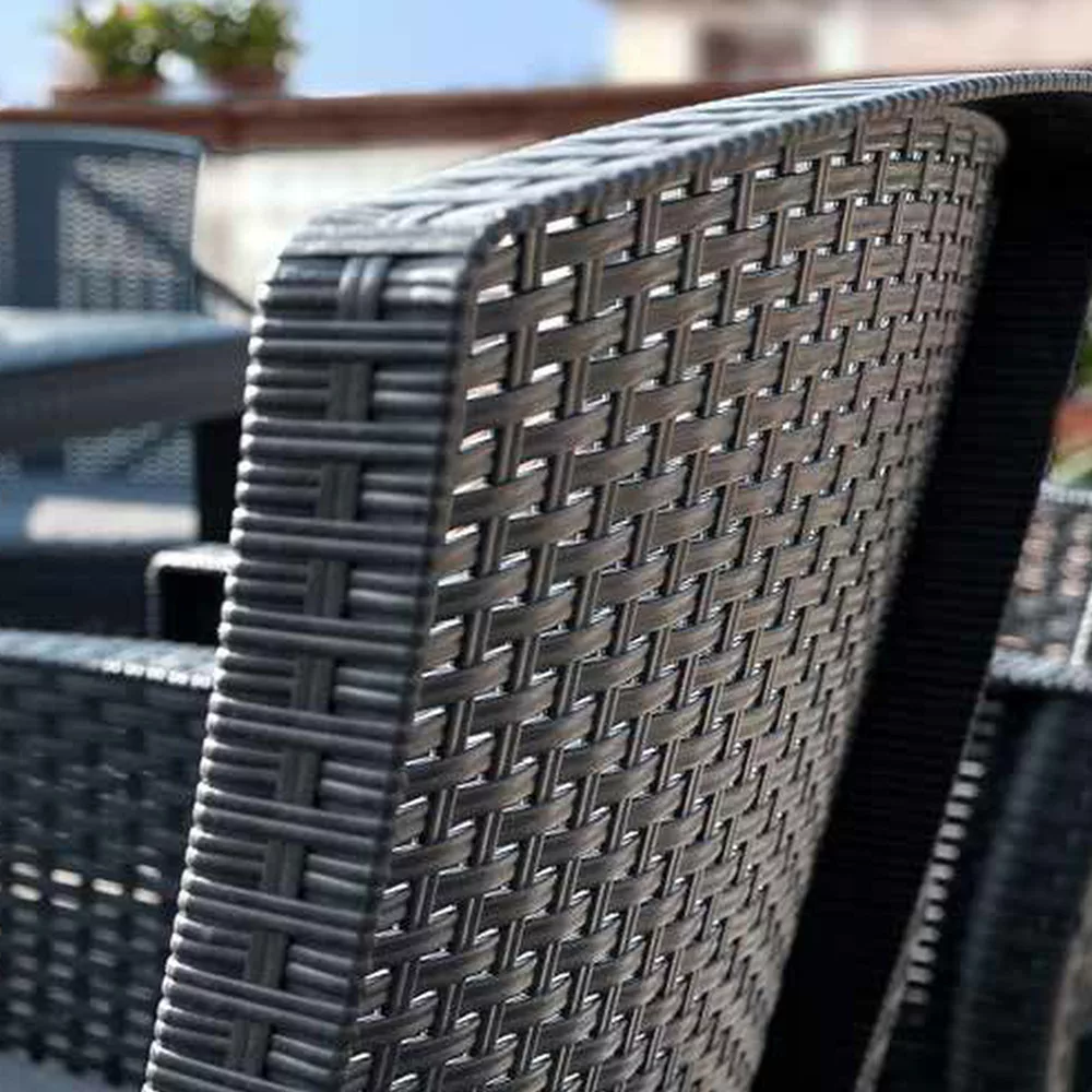 A Hellma 4 személyes kerti bútornak eredeti rattan szerkezetű felülete, valamint a foteleknek kényelmes ülőrésze van. A teraszok, az erkélyek és a ház körüli kertek mind olyan helynek számítanak, ahol szívesen találkozunk a barátainkkal, családtagjainkkal. Az ott eltöltött időt még kedvesebbé teheted a tér stílusos berendezésével és a kényelmes kerti bútorokkal.UV sugárzásnak és az időjárás viszontagságainak ellenálló műanyagból készült. A bútor szett ideálisan beleillik minden ház körüli térbe, ahol ideális helyet teremt a szabad levegőn való pihenéshez. Természetes rattan fonással inspirált felülete a termék esztétikai előnyei közé sorolható.