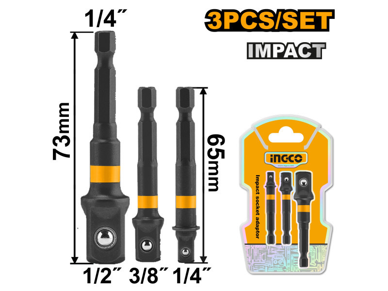 INGCO Dugókulcs adapter 3 részes 1/4" Hex-->1/2", 1/4", 3/8&qu