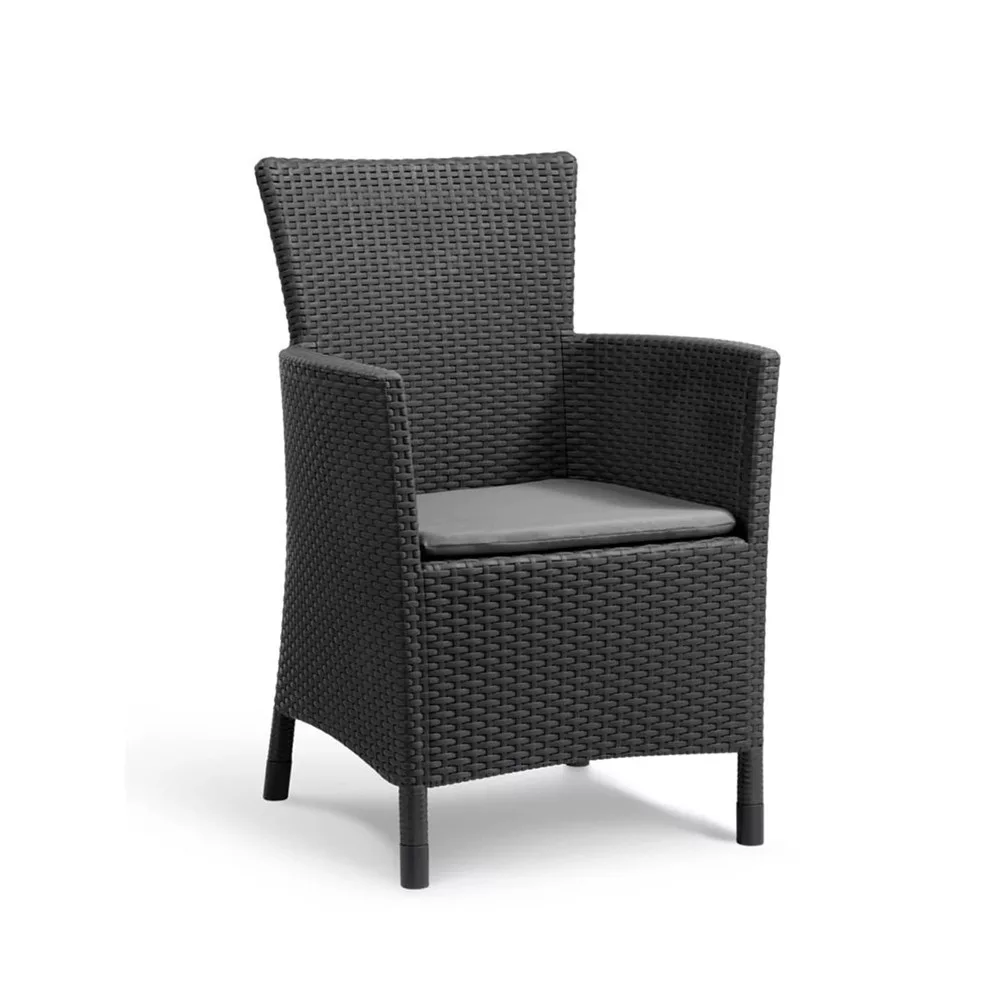 A Iowa Balcony kerti bútor garnitúra luzon kényelem és a stílusos design tökéletes ötvözetét kínálja az erkélyen vagy a teraszon. A grafit színű rattan hatású felület elegáns megjelenést kölcsönöz, miközben a puha párnákkal ellátott karosszékek komfortossá teszik a kikapcsolódást.
