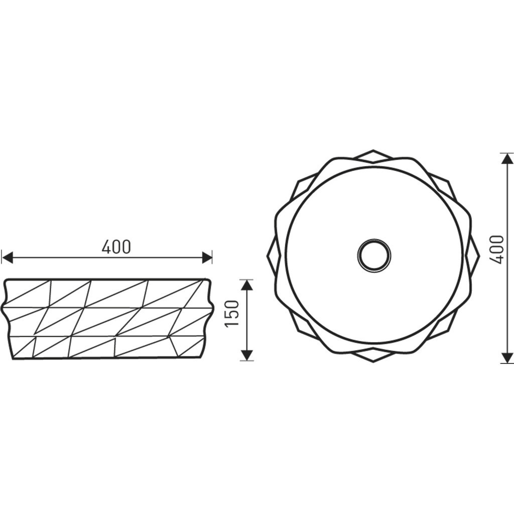 Forma & méret: tökéletes kör ⌀ 40 cm • magasság 15 cm • túlfolyó- és csaplyuk nélküli monoblokk