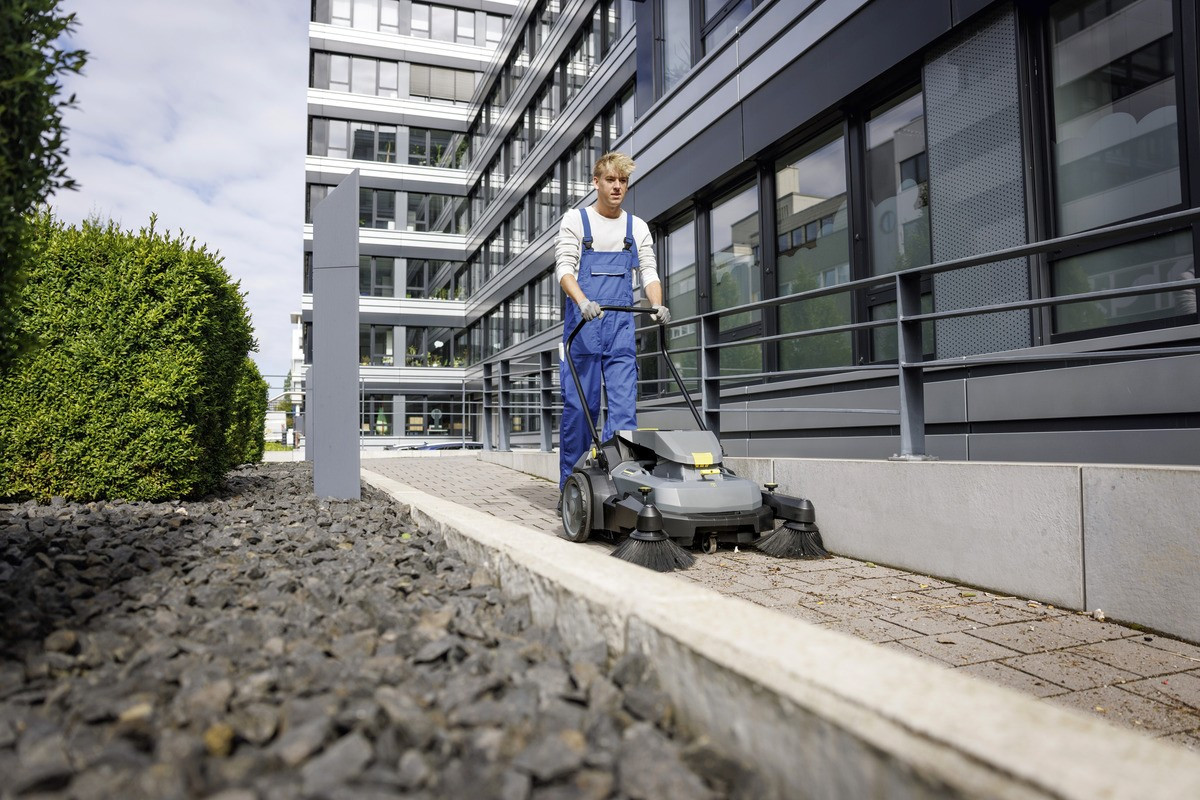 A KM 70/30 C kézi seprőgép hatékony és eredményes megoldás a kemény felületek tisztítására kül- és beltéren egyaránt. A seprőhenger, az oldalsó kefe és a ventilátor akkumulátorral működik, és jelentősen növeli a munkavégzés kényelmét: a felhasználók a sarkokat és a nehezen hozzáférhető területeket könnyedén, lényegesen kisebb erőkifejtéssel seperhetik. Az aktív szívással ellátott lapos pliszírozott szűrő még a nagy mennyiségű finom por eltávolításakor is csökkenti a por keletkezését, és tisztán tartja a munkakörnyezetet. A seprőhenger hat fokozatban állítható, hogy a különböző felületekhez igazítsa a tisztítási teljesítményt. A kiegészítő felszerelések, például vödrök és szemétgyűjtők számára kialakított praktikus polc megkönnyíti a munkát. A karbantartás is egyszerű, az oldalsó kefe és a szűrő cseréjéhez nincs szükség szerszámokra. A 36 V-os Kärcher Battery Power+ akkumulátorplatform minden helyzetben elegendő energiát biztosít. A cserélhető akkumulátor a könnyű szállítás érdekében kivehető. Az akkumulátor és az akkumulátortöltő nem tartozik a szállítási terjedelemhez.