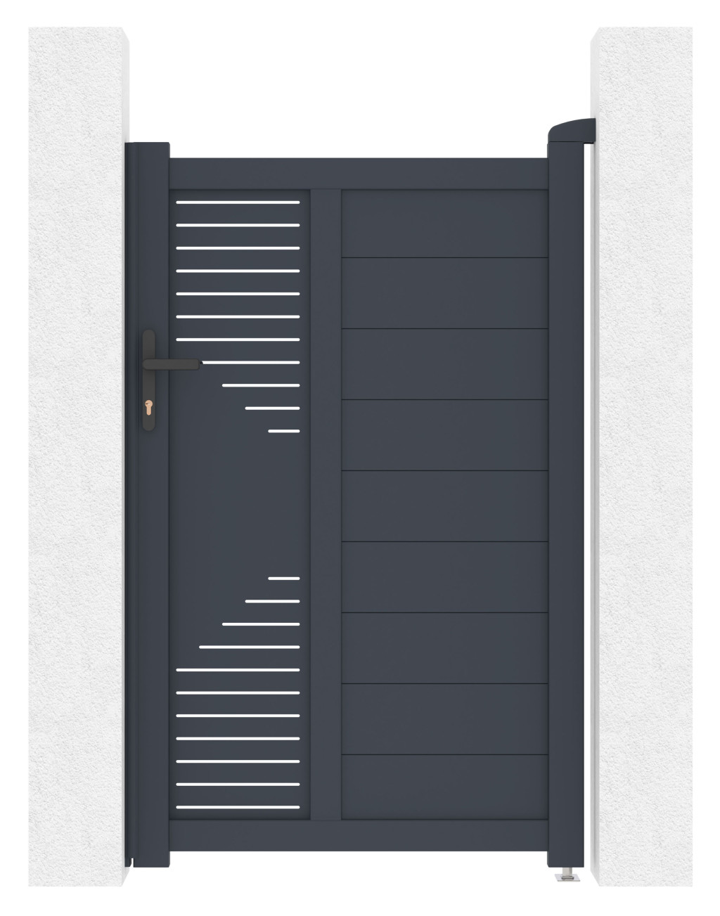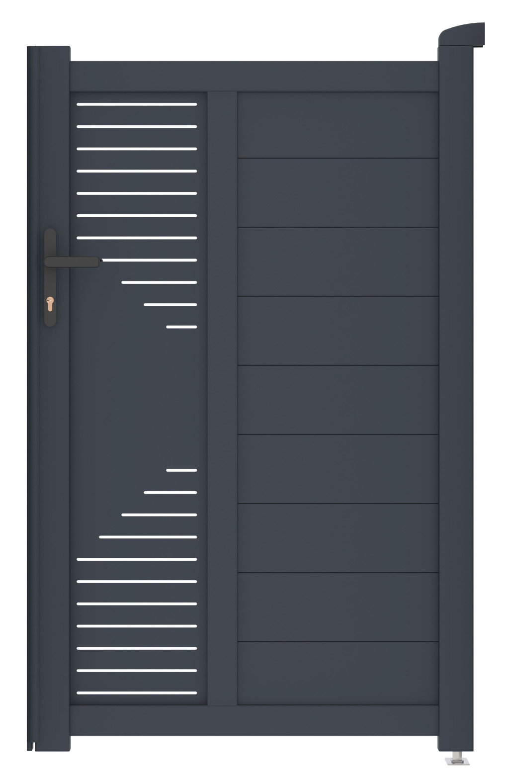 A kerítéskapu kulcsfontosságú eleme egy ingatlan vagy telek kerítésének. A porbevonatnak köszönhetően a 158 cm magas Marion alumínium kapu még hosszabb élettartamú, strapabíró és egyben lenyűgöző és a szélességét a meglévő kerítéshez igazíthatja. Fogantyúnyitás és zár FAB betéttel.
