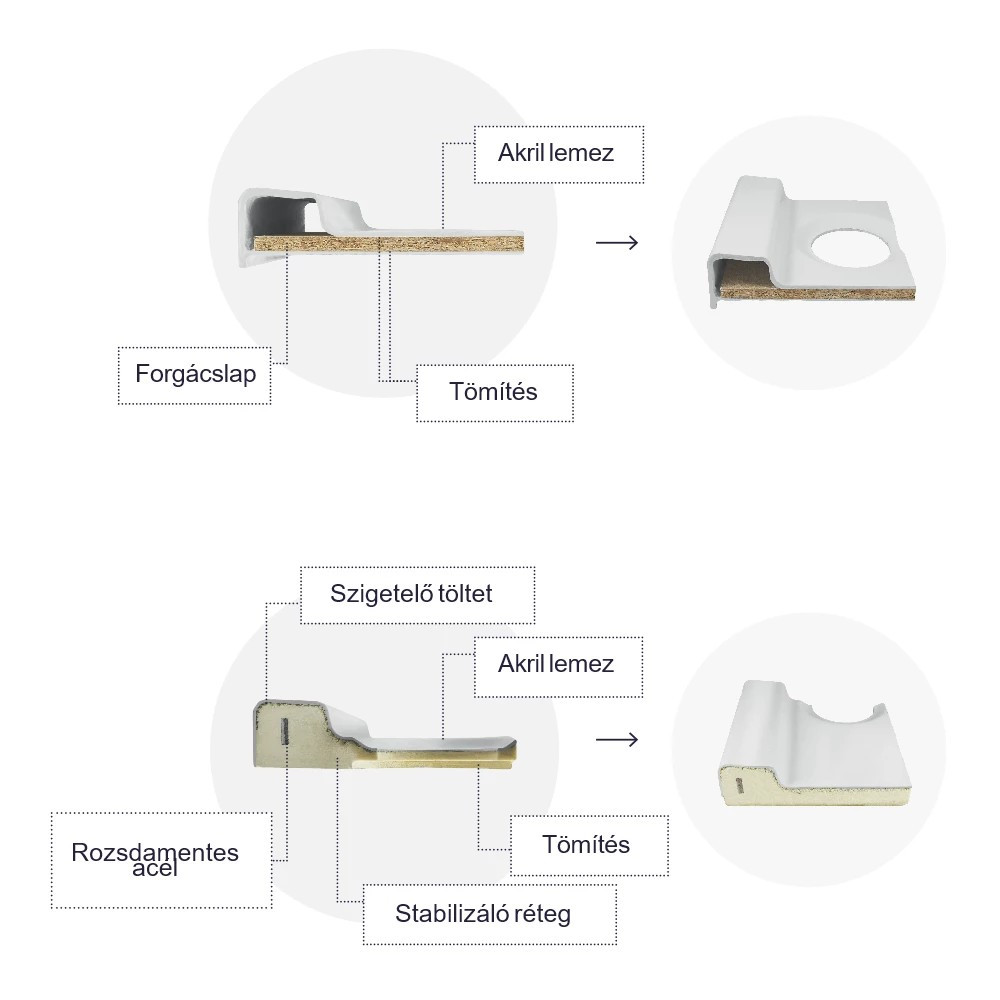 Acélsablonos gyártási technológiával készült. A zuhanytálca peremei mindig ideálisan derékszögűek, ami nagy mérétkben megkönnyíti a beszerelést, és mindig esztétikus megjelenést kölcsönöz a terméknek.