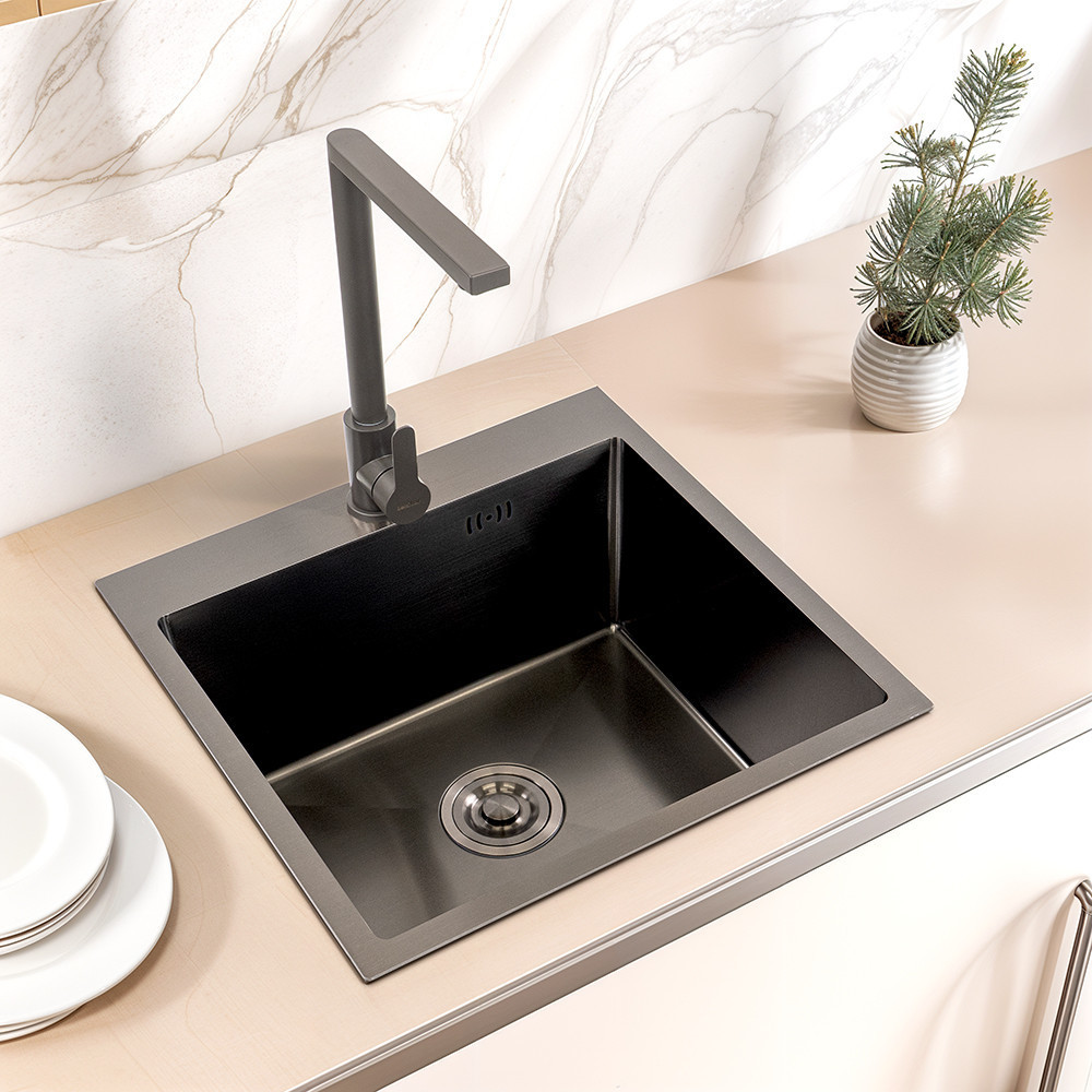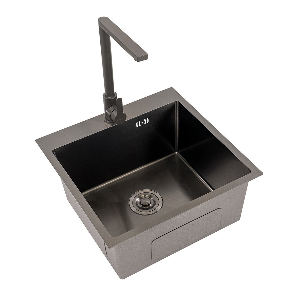 A mosogató lelke a 201-es rozsdamentes acél, amelyet egy modern fekete nano bevonattal láttunk el. Ez a kombináció kiválóan teljesít a legnagyobb igénybevétel mellett is: