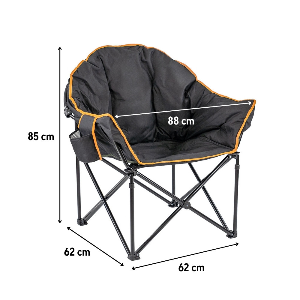 A kagylóformájú Leziter horgász fotel extra vastag párnázása és 600D Oxford huzata révén puhán öleli körbe a hátat és a vállakat, így akár egész nap élvezheted a pecázást, kempingezést vagy tábortüzet fáradtság nélkül. Az acélcső váz oldalanként 62 cm-es, széles támaszt ad, a 45 cm-es ülésmagasság pedig ideális a bot gyors felkapásához, miközben kíméli a térdet.