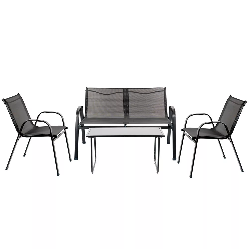 A dupla ülőfelület bőséges helyet biztosít két személy számára, míg a porszórt acélváz és a textilene huzat gondoskodik a tartósságról és az egyszerű karbantartásról.