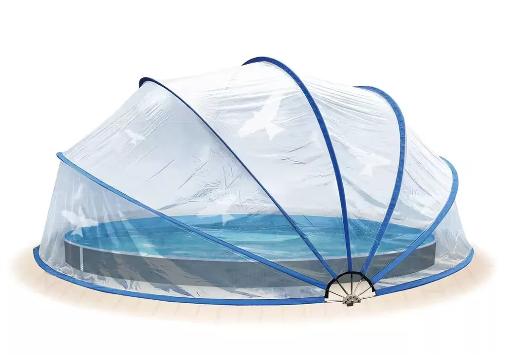 Az átlátszó fedés lehetővé teszi a medence és környezete megfigyelését. Gyermekei nem juthatnak be felügyelet nélkül a vízbe, így biztonságban lesznek, amíg Ön nem ér rá felügyelni őket. A fedés megakadályozza, hogy kutyája, macskája vagy más házi kedvence "fürdőzni" induljon. A fedés segít tisztán tartani a medencét – a levelek, esővíz vagy szennyeződések lecsúsznak róla. UV sugárzás elleni védelem is biztosított a medence és a víz számára.