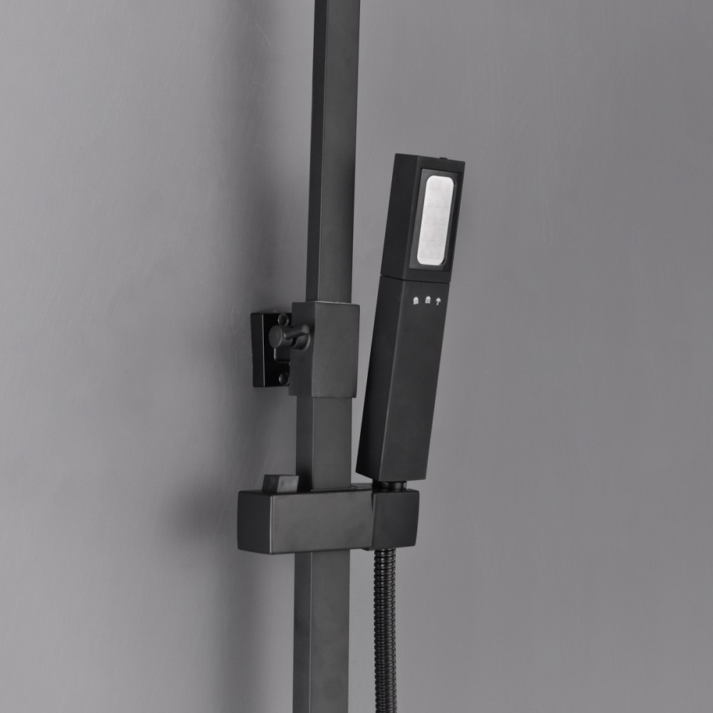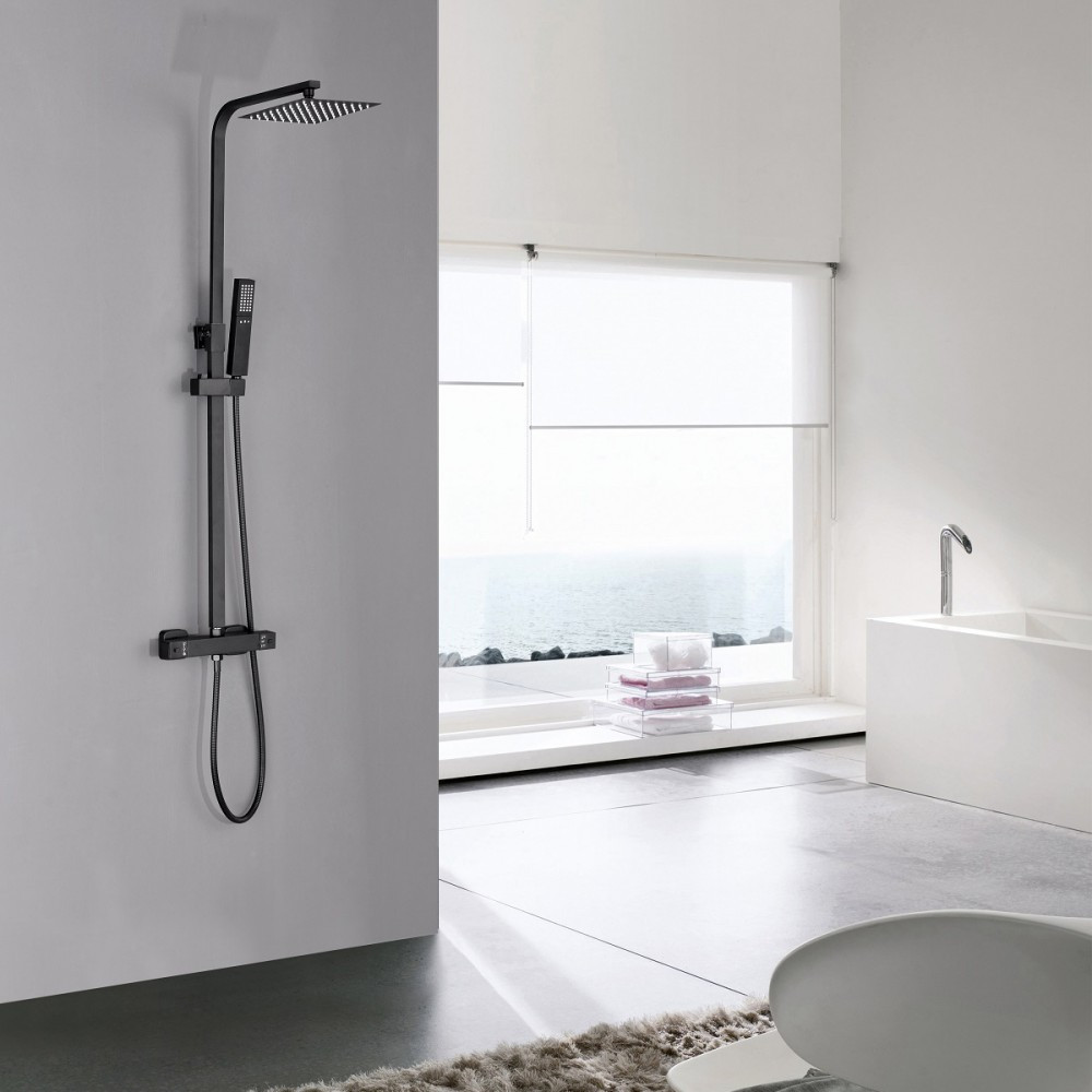 A Mazama black termosztátos zuhanyszett minden képzeletet felülmul funkcionalitása és letiszult formájának köszönhetően. A Mazama zuhanyszetthez jár egy mechanikus zuhany csaptelep hőmérséklet-keverővel, szabályozással és egy vízáram-kapcsoló az esőzuhany és a zuhanyfej közötti váltás érdekében. A kézi zuhanyfej, az 1,5 m-es zuhanytömlő és az esőztető ABS-ből készült,mely fekete színnel van borítva. A szett elegáns esőzuhanyt és zuhanyfejet tartalmaz. A zuhanyszett fekete teste rozsdamentes acélból lett létrehozva, magassága állítható (800-1200 mm).A zuhanyszettet a talajtól 85 cm-re ajánlott felszerelni. Ezzel a csapteleppel élvezet lesz a zuhanyzás. A megjelenésén kívül nagy előnye, hogy kézi zuhannyal és trópusi esőztetővel is fel van szerelve. A trópusi esőztető megkönnyíti a mindennapokat és még kellemesebbé varázsolja a tusolás élményét.