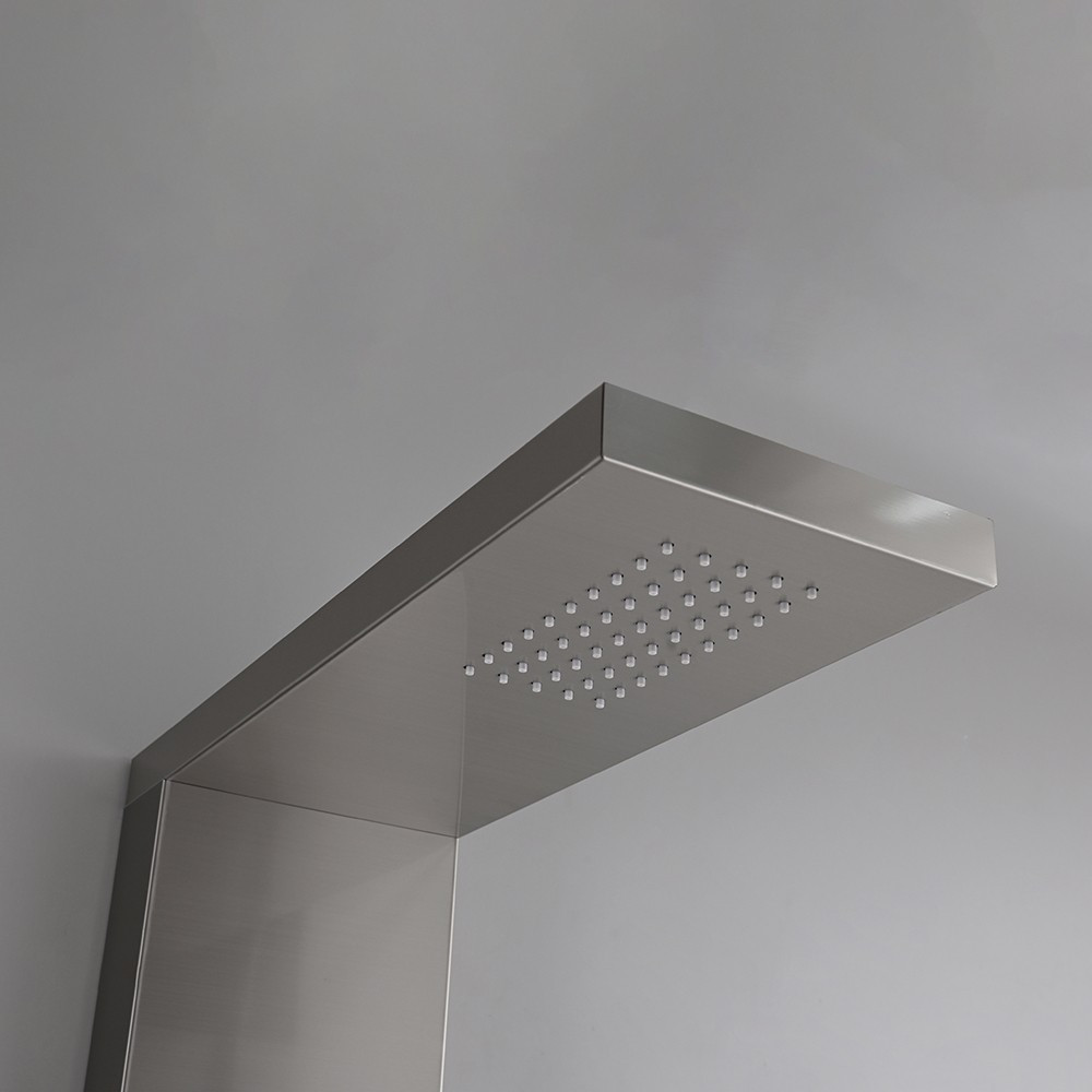 A Merino hidromasszázs zuhanypanel egy kiváló minőségű, modern és stílusos zuhanypanelegyüttes, amelyet az élménydús fürdőzés és zuhanyozás szerelmeseinek terveztek. A panel mérete 119x19x6,5 cm, ami ideális méretet biztosít a fürdőszobák számára, akár a nagyobb, akár a kisebb terekhez. Ez a zuhanypanel 0,8 mm vastagságú szálcsiszolt rozsdamentes acélból készült, ami nemcsak kiemelkedően tartós, de elegáns megjelenést is kölcsönöz a fürdőszobának. A szálcsiszolt felület finom és esztétikus, tovább fokozva a zuhanypanel vonzó megjelenését. A rozsdamentes acél anyagból készült zuhanypanel ellenáll a rozsda, a vízkő és a korroziónak, így hosszú élettartammal rendelkezik, és könnyen tisztán tartható.