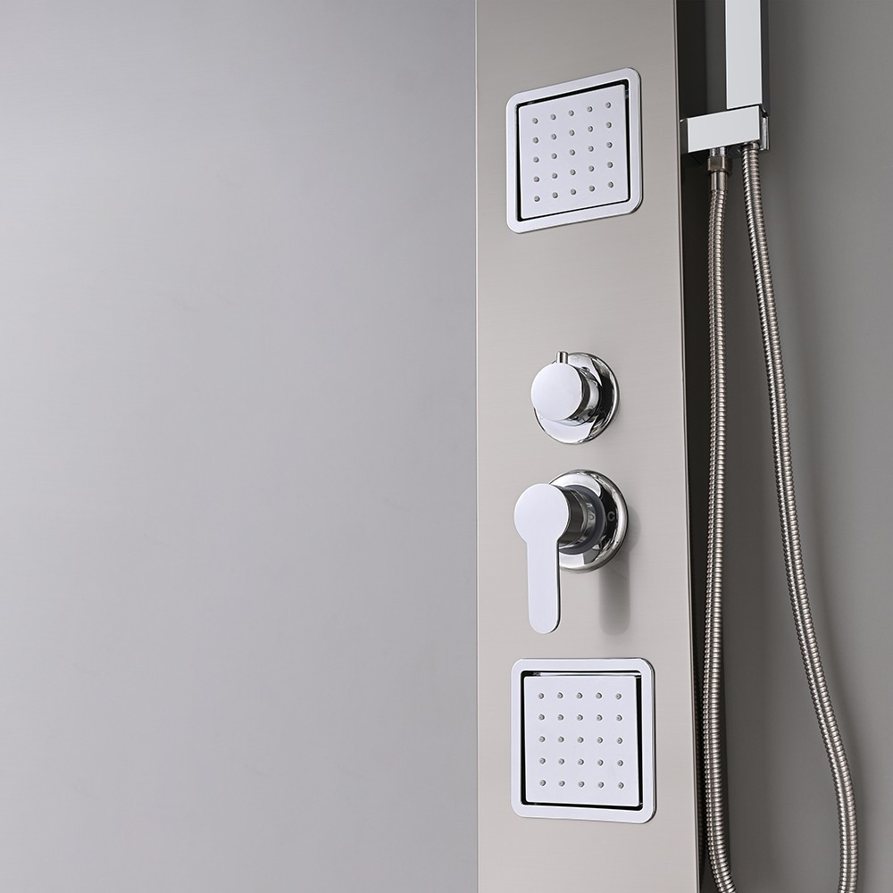 A Merino hidromasszázs zuhanypanel egyedülállóan elegáns, funkcionalitásban és stílusban is gazdag kiegészítője lesz a fürdőszobának. A rozsdamentes acélból készült tartós kivitel, a különleges vízfunkciók és a könnyen kezelhető csaptelep és fogantyúk együttesen teszik ezt a zuhanypanelt az ideális választássá a mindennapi fürdőzés luxusát keresők számára. Kényeztesse magát egy igazi wellness élménnyel a Merino hidromasszázs zuhanypanel segítségével!
