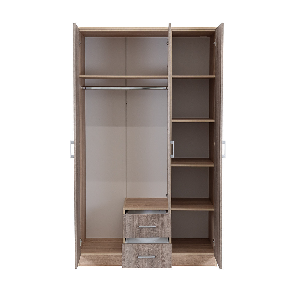 A fiókok tökéletesek a kisebb ruhaneműk és egyéb tárgyak rendszerezett tárolására, míg a vállfás ruhák számára kialakított rész, beleértve a krómozott vállfa tartó rudat, gondoskodik a ruhák átlátható és gyűrődésmentes elhelyezéséről.