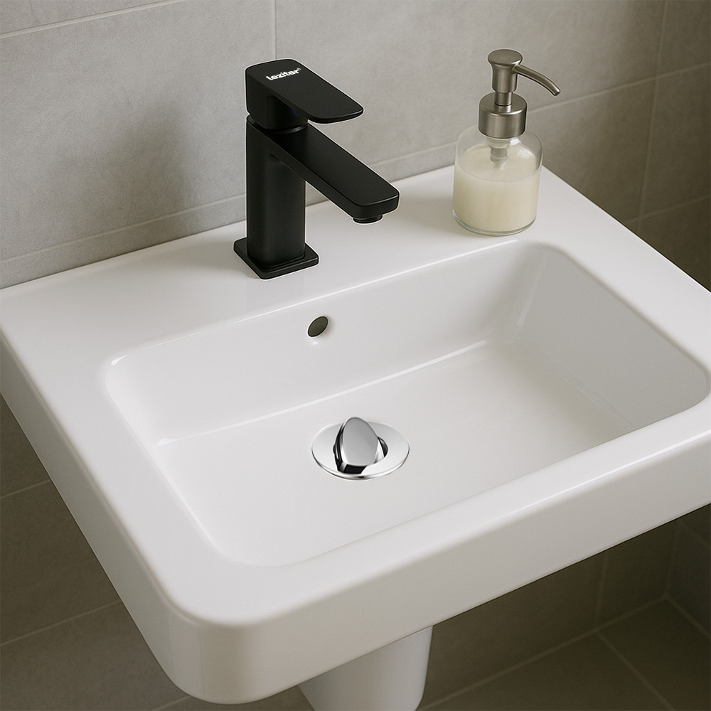 A Leziter lefolyó egyszerű, mégis megbízható választás minden túlfolyós mosdóhoz. Válaszd a letisztult stílust és a funkcionalitást egyetlen kiegészítőben.