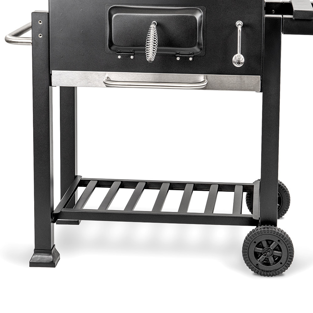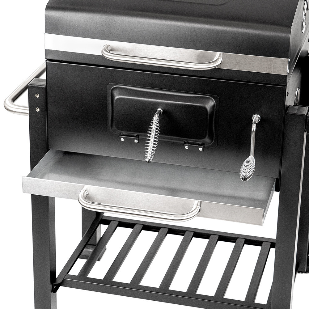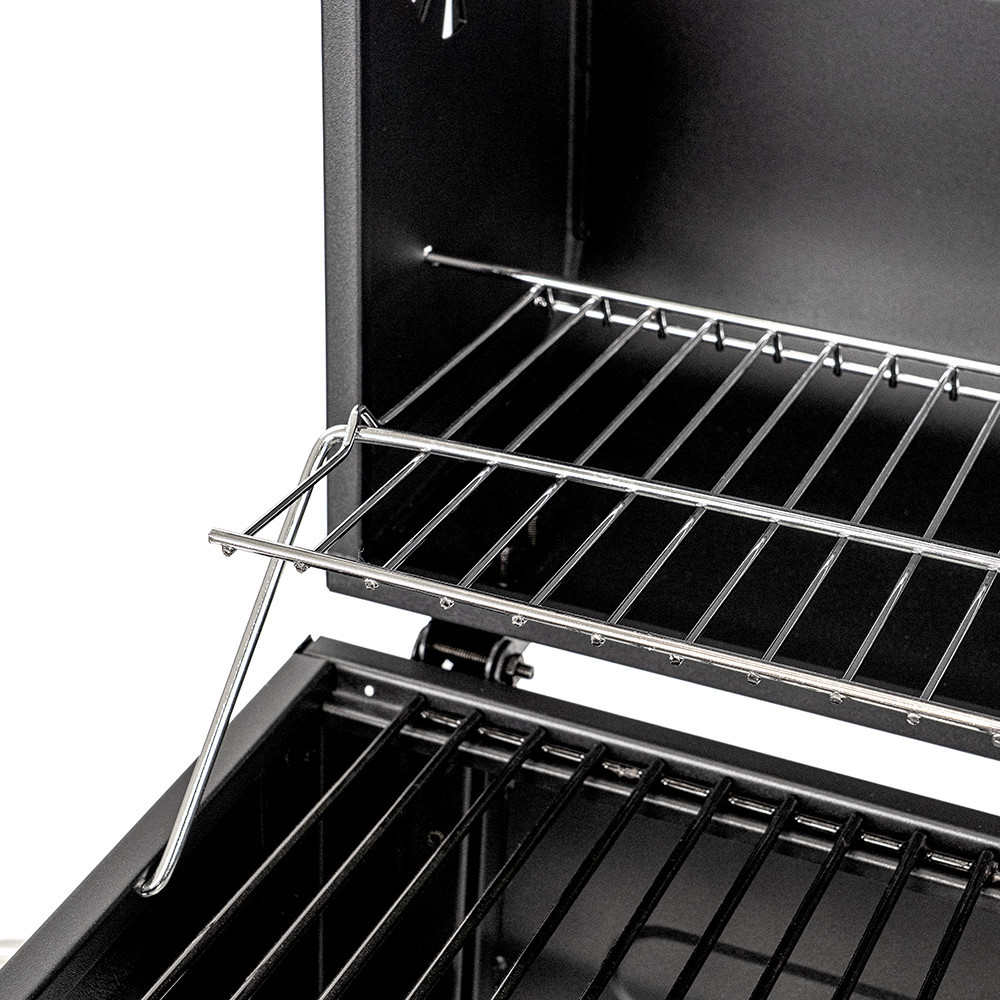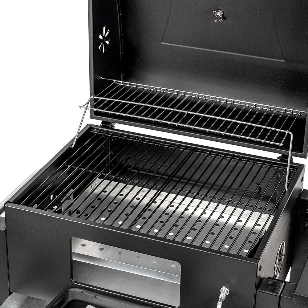 Legyen szó szaftos steakekről, grillezett zöldségekről vagy füstös hamburgerekről, ezzel a grillsütővel minden étel különleges ízt kap. A melegítőrács biztosítja, hogy az elkészült fogások ne hűljenek ki, így minden egyszerre lehet tálalni. A lehajtható fedél pedig megőrzi a füstaromákat, így az ízek még intenzívebbé válnak. A állítható faszéntálca precíz hőkontrollt tesz lehetővé, így minden étel a kívánt hőmérsékleten készül el, egyenletesen átsülve.
