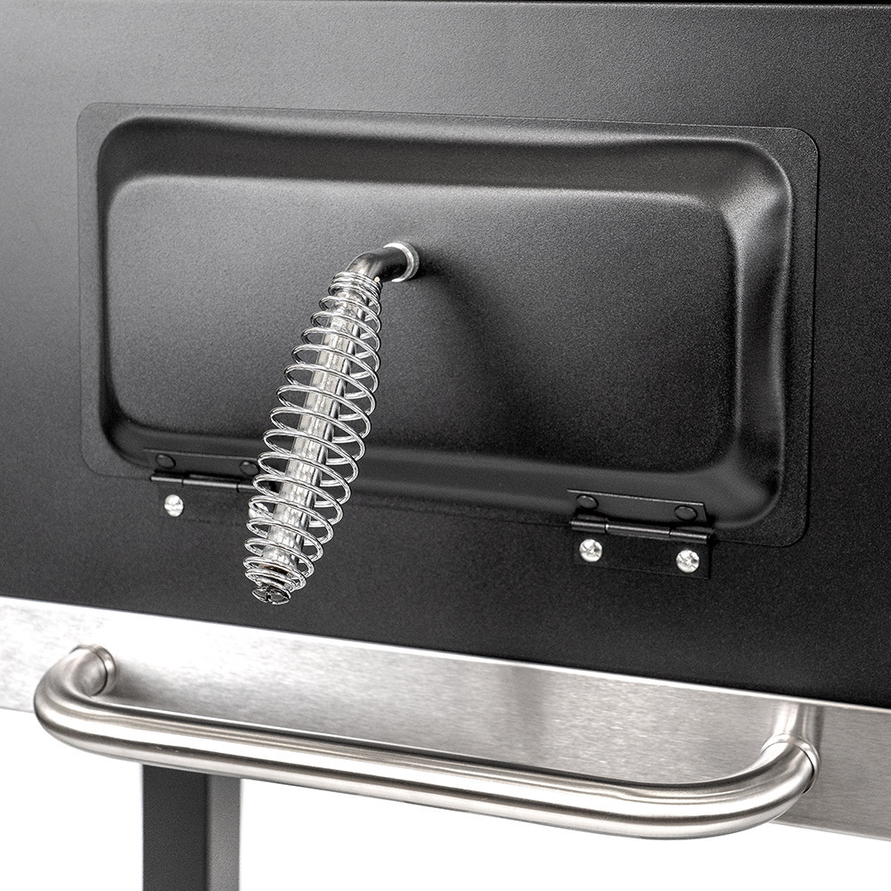 A Leziter Multifunkciós Grillsütő kialakításának köszönhetően a grillezés nemcsak egyszerűbb, de élvezetesebb is. Az oldalsó polc és az alsó tárolórács biztosítja, hogy minden szükséges eszköz kéznél legyen. A beépített hőmérő lehetővé teszi a pontos hőszabályozást, míg a lehajtható oldalsó asztalok több helyet biztosítanak az előkészítéshez, de összecsukhatók, amikor nincs rájuk szükség. A beépített üvegnyitó pedig extra kényelmet biztosít – a grillmesternek nem kell keresgélni a sörnyitót, mert mindig kéznél van.