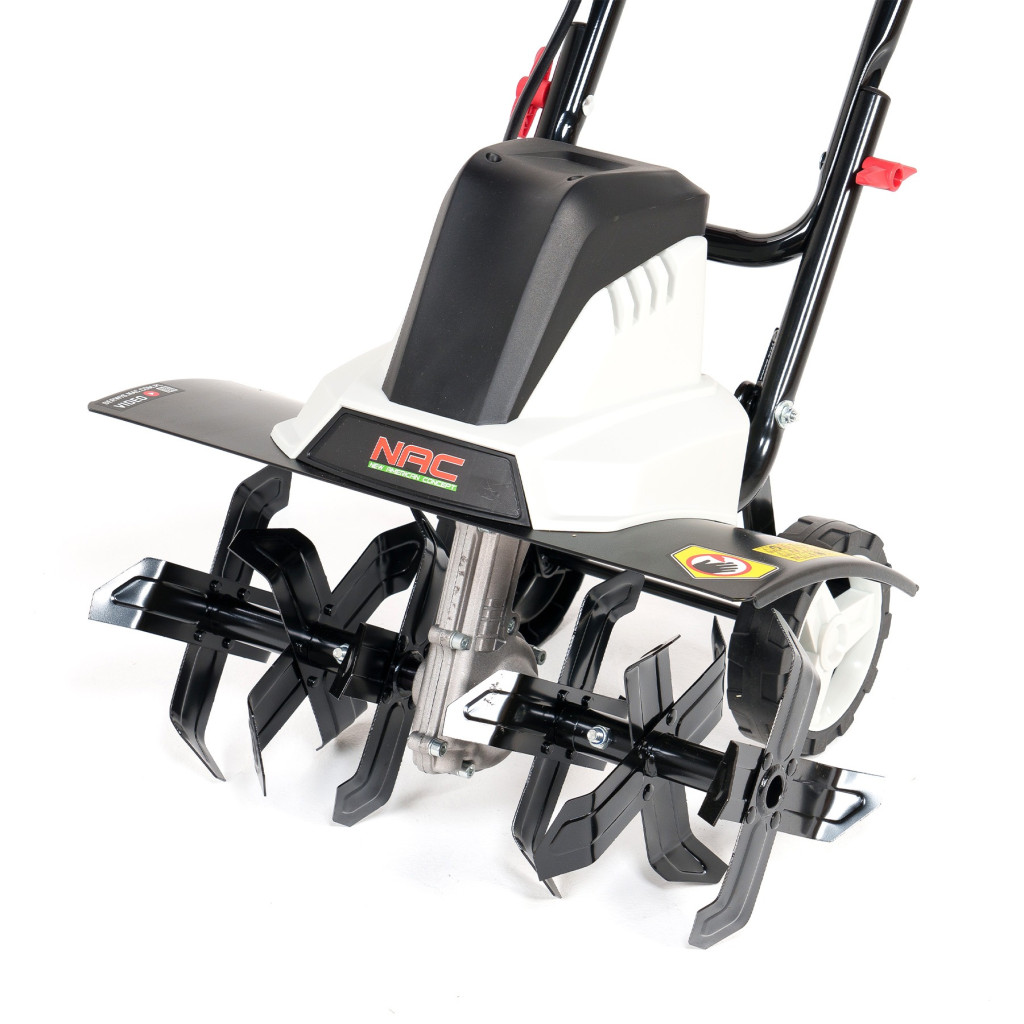 Lazítsa fel a talajt a NAC TIE150-W elektromos kultivátorral. A 1 500 W teljesítményű motor megbízható működést biztosít. Az eszköz kiválóan alkalmas háztáji kertekhez, ahol van elektromos hálózati csatlakozás. Kényelmes használatot és egyszerű kezelhetőséget biztosít a két műanyag keréknek köszönhetően.