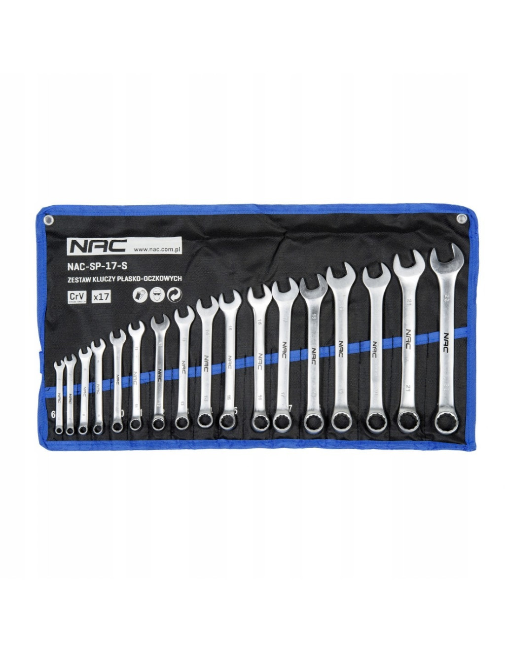 Szerezze be a 12 darabos villás-körkulcs készletet NAC SP-12-S, amely 6-tól 22 mm-ig terjedő méreteket tartalmaz. A széles mérettartománynak köszönhetően ideális hétköznapi javításokhoz, karbantartáshoz és professzionális műhelymunkákhoz is. Minden kulcs erős króm-vanádium acélból készült, amely hosszú élettartamot és megbízhatóságot biztosít még intenzív használat során is. Természetesen ellenáll a korróziónak is. A készlet praktikus, falra akasztható tárolóban érkezik.