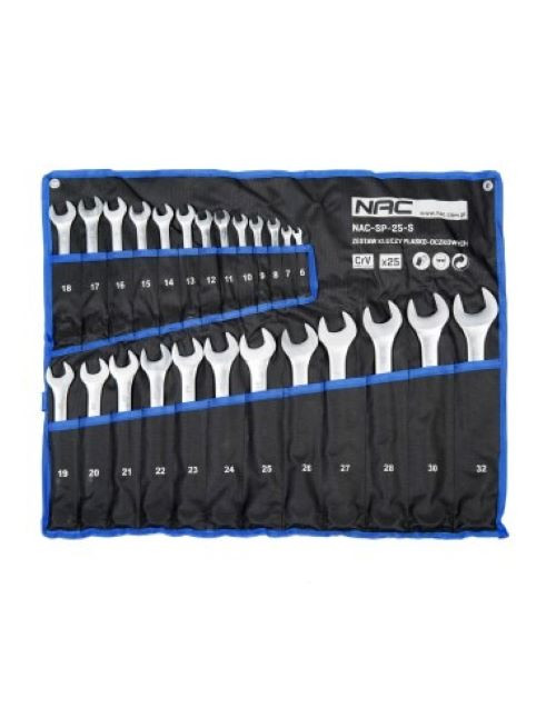 Szerezze be a 25 darabos villás-körkulcs készletet NAC SP-25-S, amely 6-tól 32 mm-ig terjedő méreteket tartalmaz. A széles mérettartománynak köszönhetően ideális hétköznapi javításokhoz, karbantartáshoz és professzionális műhelymunkákhoz is. Minden kulcs erős króm-vanádium acélból készült, amely hosszú élettartamot és megbízhatóságot biztosít még intenzív használat során is. Természetesen ellenáll a korróziónak is. A készlet praktikus, falra akasztható tárolóban érkezik.