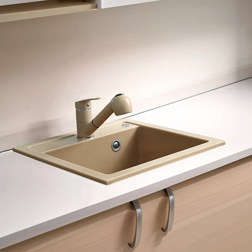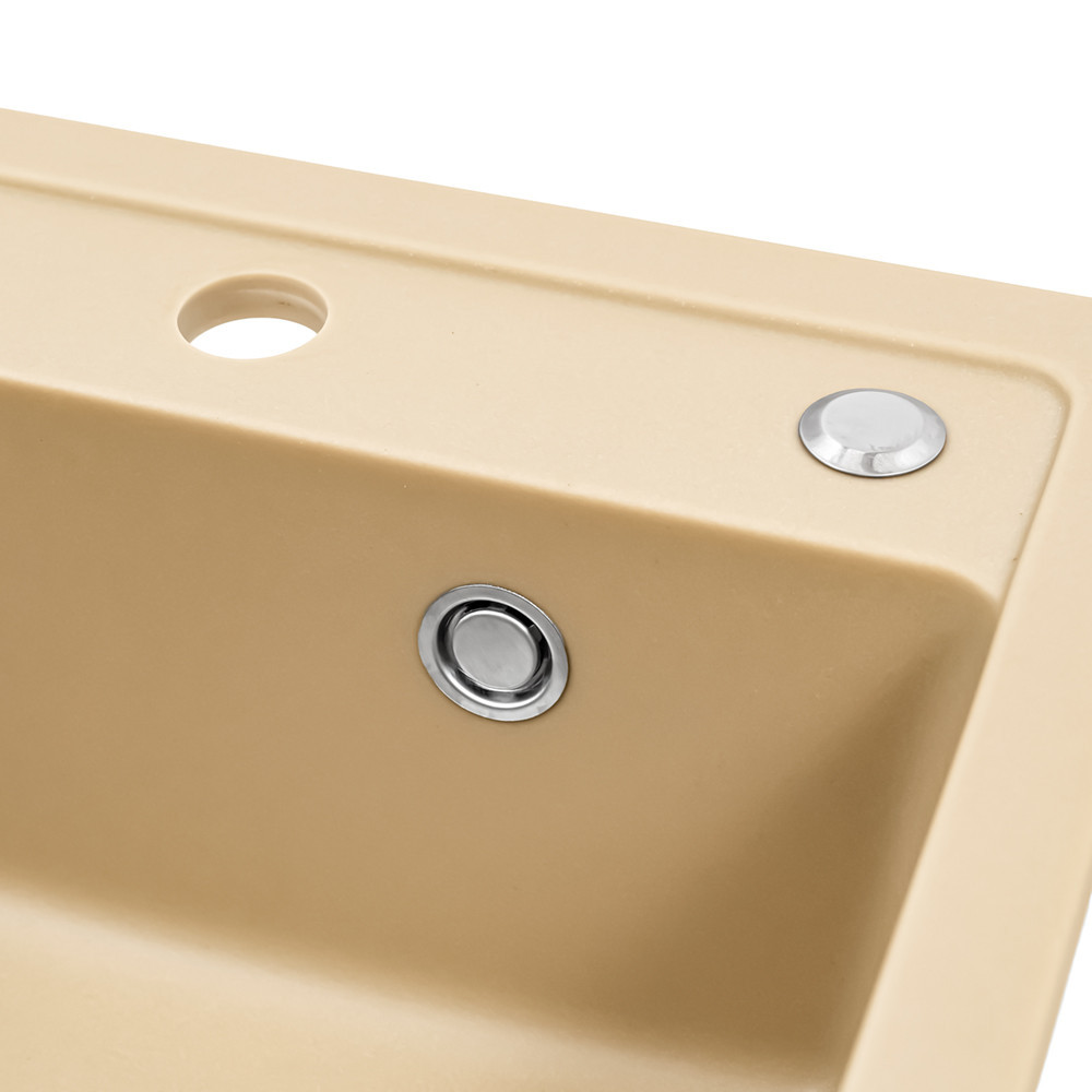 A Nia szögletes Bézs gránit mosogató egyaránt kielégíti az esztétikai és a funkcionalitási igényeket. A süllyesztett beszerelési módja modern megjelenést kölcsönöz konyhájának, míg a kompakt méretei és a prémium minőségű anyagok hosszú élettartamot biztosítanak.