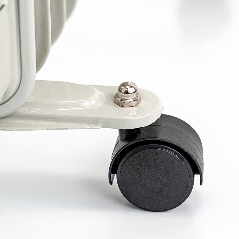 A radiátor beépített szállítófogantyúkkal és sima kerekekkel van felszerelve, így könnyedén áthelyezhető a kívánt helyiségbe. A teljesítményjelző fény mindig mutatja, hogy a készülék működésben van-e, így folyamatosan ellenőrzés alatt tartható.