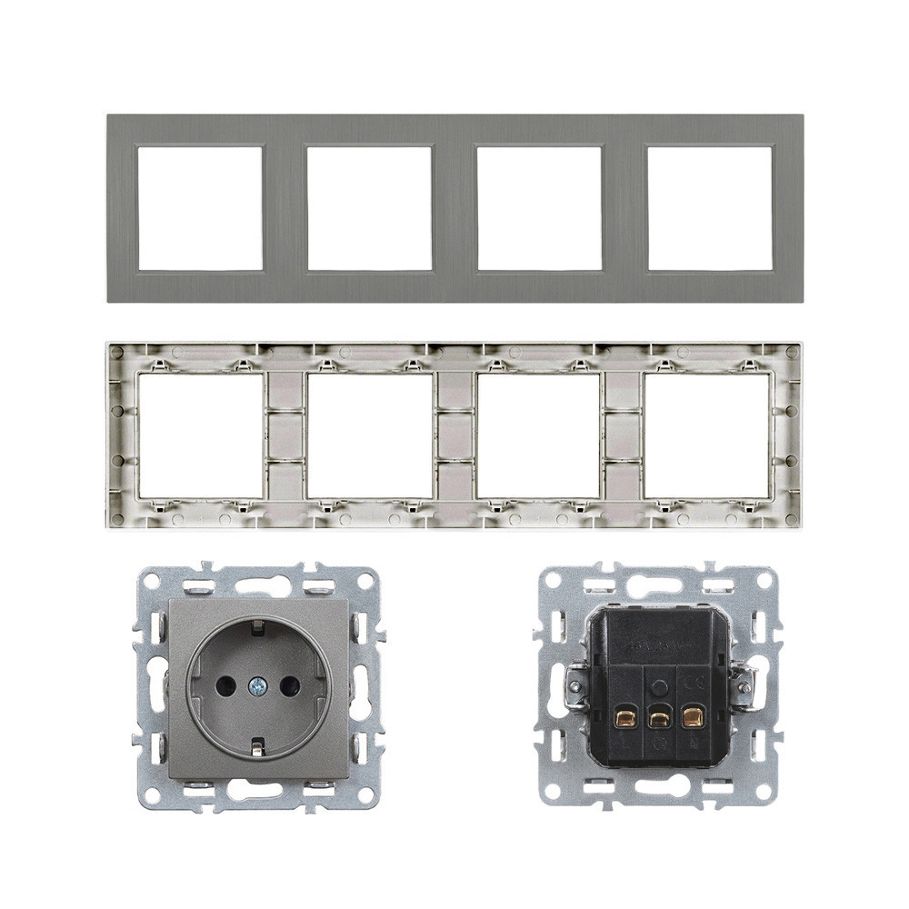 A Nova IV négyes földelt csatlakozóaljzat ideális megoldás, ha több eszközt szeretnél egy helyen, biztonságosan csatlakoztatni. A 16 A / 250 V névleges értékeknek köszönhetően alkalmas nagyobb teljesítményű háztartási vagy irodai készülékek – például konyhai gépek, számítástechnikai eszközök vagy takarítógépek – egyidejű használatára. A süllyesztett kivitel, a keret nélküli modul és a mellékelt fehér, vízszintes négyes keret letisztult, modern megjelenést biztosít. IP20-as védettsége miatt kizárólag száraz, pormentes beltéri környezetben alkalmazható. Telepítését minden esetben szakképzett villanyszerelőnek kell elvégeznie a biztonsági előírások betartásával.
