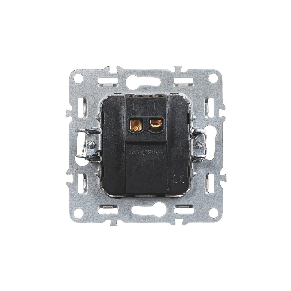 A Nova 101N csengőkapcsoló működési elve megegyezik az egypólusú 101 kapcsolóéval, azonban ebben az esetben egy beépített rugó automatikusan visszanyitja az áramkört az ujj elvétele után – így ideális csengők, kapucsengők vagy más impulzusvezérlésű berendezések vezérlésére. A fázisvezeték megszakításával működik, a nullavezetéket nem érinti. A kapcsoló keret nélküli kialakítású, kompatibilis a szabványos moduláris szerelvénycsaládokkal, csavaros rögzítésű és süllyesztett beépítésre alkalmas. Nem tartalmaz világító betétet. Az IP20-as védelem kizárólag száraz, beltéri felhasználást tesz lehetővé, például előtérben, folyosón vagy bejárati ajtó közelében. Nedves vagy kültéri környezetben nem alkalmazható. A bekötést minden esetben szakképesítéssel rendelkező villanyszerelő végezze a hatályos előírásoknak megfelelően.