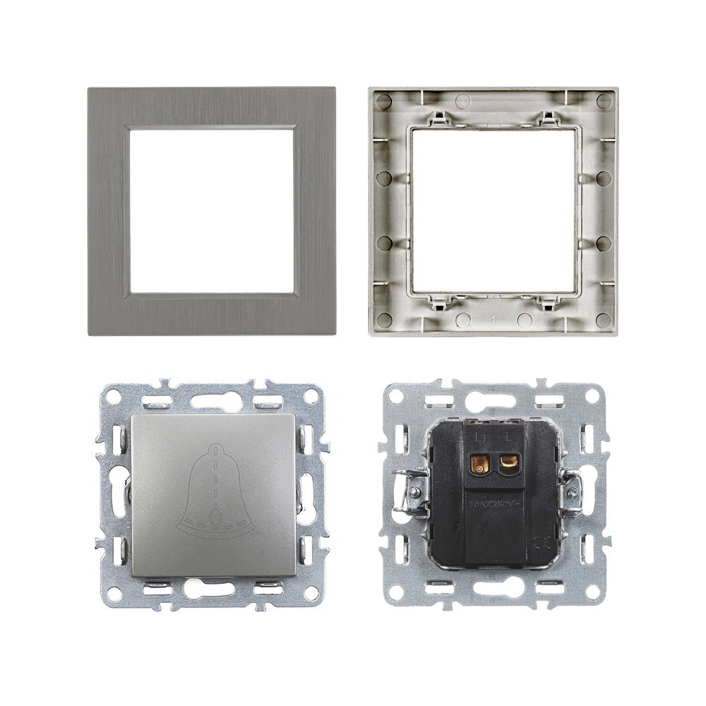 Nova csengőkapcsoló 101N szürke kerettel – megbízható impulzusvezérlés letisztult dizájnnalFőbb termékjellemzők:Típus: Csengőkapcsoló (rugós visszanyitású, impulzuskapcsoló)Névleges áramerősség: 10 ANévleges feszültség: max. 250 V ACKialakítás: Keret nélküli modul beépített szürke egyes kerettelSzerelés módja: Süllyesztett, szabványos szerelődobozbaÉlforma: Lekerekített perem (round edge)Szín: szürkeIP védettség: IP20 – kizárólag beltéri, száraz környezethezVilágító betét: Nem tartalmazIdeális megoldás csengő- és impulzusvezérléshezA Nova csengőkapcsoló 101N szürke kerettel egy speciális működésű, rugós visszanyitású kapcsoló, amely az ujj elvétele után automatikusan megszakítja az áramkört. Ezáltal kiválóan alkalmas kapucsengők, lépcsőházi világítások, relévezérelt áramkörök vagy más impulzusvezérelt eszközök működtetésére. A kapcsoló csak a fázisvezeték megszakítására szolgál, a nullavezeték nem kerül bontásra.Beépített szürke kerettel – készre szerelve, azonnal telepíthetőA termék gyárilag tartalmazza a szürke színű, lekerekített élű egyes keretet, így a szerelvény azonnal beépíthető esztétikus és egységes megjelenéssel. A süllyesztett telepítésű kivitel szabványos szerelődobozhoz illeszkedik, csavaros rögzítéssel. A diszkrét és letisztult kialakítás harmonikusan illeszkedik bármilyen modern beltéri környezetbe.Nova rendszerkompatibilitás és esztétikus bővíthetőségA keret nélküli kialakítású modul a Nova szerelvénycsalád része, ezért bármely Nova típusú kapcsolóval, aljzattal vagy adatmodullal többes keretbe is illeszthető, így egyszerűen kialakítható egy egységes, funkcionális és vizuálisan rendezett fali rendszer.Ajánlott alkalmazási helyek:Előszobák, folyosók, bejáratok – kapucsengőkhözLépcsőházak, közlekedők – impulzusrelés világításhozIrodai bejáratok, beléptető rendszerek – vezérlőkapcsolókéntA termék IP20 védettsége miatt kizárólag száraz, pormentes beltéri környezetben használható. Nedves vagy kültéri helyszíneken való alkalmazása nem megengedett. A bekötést csak szakképesítéssel rendelkező villanyszerelő végezheti, a vonatkozó előírások betartásával.Miért érdemes a Nova szerelvénycsaládot választani?Letisztult, egységes dizájn modern belső terekhezModuláris rendszer, bővíthető keretekkel és funkciókkalMegbízható működés és könnyű telepíthetőségStílusos szürke kivitel lekerekített formákkalRendeld meg most a Nova csengőkapcsolót szürke kerettel – és építsd ki a funkcionalitásban és megjelenésben is tökéletes impulzusvezérlést otthonodban vagy irodádban!