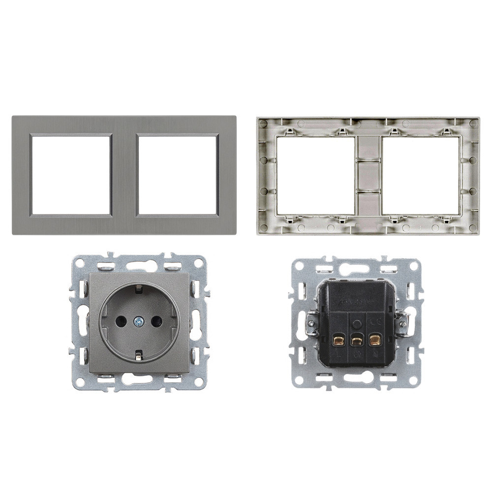 Nova földelt csatlakozóaljzat kettős dugalj 16A 250V fehér kerettel Főbb jellemzők: Típus: 2 db földelt csatlakozóaljzat (dugalj) 2P+F, F típus, közös vízszintes keretben Névleges áramerősség: 16 A Névleges üzemi feszültség: 250 V AC Kialakítás: Két különálló modul egy vízszintes, 2-es keretben Élforma: Lekerekített perem Szín: Fehér Méretek: 150 × 83 mm Szerelés módja: Süllyesztett, szabványos szerelődobozba IP védettség: IP20 (száraz, beltéri környezethez) Kettő az egyben: dupla földelt aljzat egyetlen elegáns megoldásban A Nova kettős földelt csatlakozóaljzat ideális választás, ha egyszerre több elektromos eszközt szeretnél csatlakoztatni egy helyen – legyen szó konyháról, nappaliról vagy irodáról. A két darab, egymás mellett elhelyezett 2P+F (Schuko) aljzat stabil és biztonságos csatlakozást biztosít 16 A áramerősség és 250 V feszültség mellett. Különösen hasznos olyan helyeken, ahol egyszerre több nagyobb fogyasztót (pl. kávéfőző, mikró, laptop, monitor) is használnál. Letisztult kialakítás dupla praktikummal A két külön modulból álló dugalj egyetlen vízszintes, 2-es Nova keretbe van szerelve, így a megjelenés egységes, a beépítés pedig gyors és praktikus. A fehér színű, lekerekített peremű keret jól illeszkedik bármilyen modern enteriőrbe, és diszkréten simul bele a fal síkjába. A süllyesztett kivitel nem csak esztétikus, de helytakarékos is – ideális választás lakossági és munkahelyi használatra. Megbízhatóság és kompatibilitás egy rendszerben A Nova termékcsalád elemeként ez a dupla csatlakozóaljzat teljes mértékben kompatibilis más Nova modulokkal, így a fali elektromos rendszeredet stílusban és funkcióban is egységesen alakíthatod ki. A termék kizárólag száraz, pormentes beltéri környezetben alkalmazható, például hálószobában, nappaliban, irodában vagy folyosón. Szakszerű telepítés – biztonság mindenek felett A termék szabványos szerelődobozba süllyesztve, csavaros rögzítéssel telepíthető. A bekötés során mindig szakképesítéssel rendelkező villanyszerelőt szükséges megbízni, a vonatkozó szabványok és biztonsági előírások betartásával. Válaszd a Nova kettős dugaljat fehér keretben, ha letisztult megjelenésű, biztonságos és funkcionális elektromos megoldásra van szükséged – egyetlen keretben, dupla lehetőséggel.