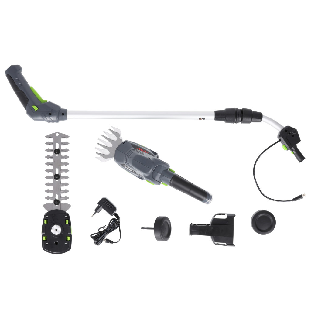 A csomag 2 különböző pengét tartalmaz – az egyik fűnyíráshoz, a másik bokrok vágásához. A gyorspengecsere-rendszer lehetővé teszi a tartozékok cseréjét szerszámok vagy kenőanyagok használata nélkül. A teleszkópos nyél segítségével kényelmesen eléri a nehezen hozzáférhető helyeket is.