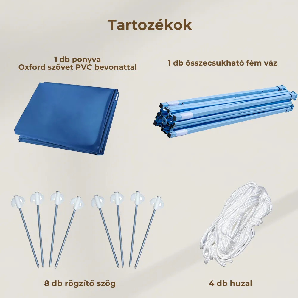 Ez az összecsukható kerti pavilon tökéletes választás bármilyen szabadtéri eseményre, legyen szó családi összejövetelről, baráti grillezésről vagy nagyobb rendezvénykrők. A masszív felépítés és minőségi anyagok biztosítják a hosszú élettartamot és védelmet az átlagos időjárási vizsonyokkal szemben.