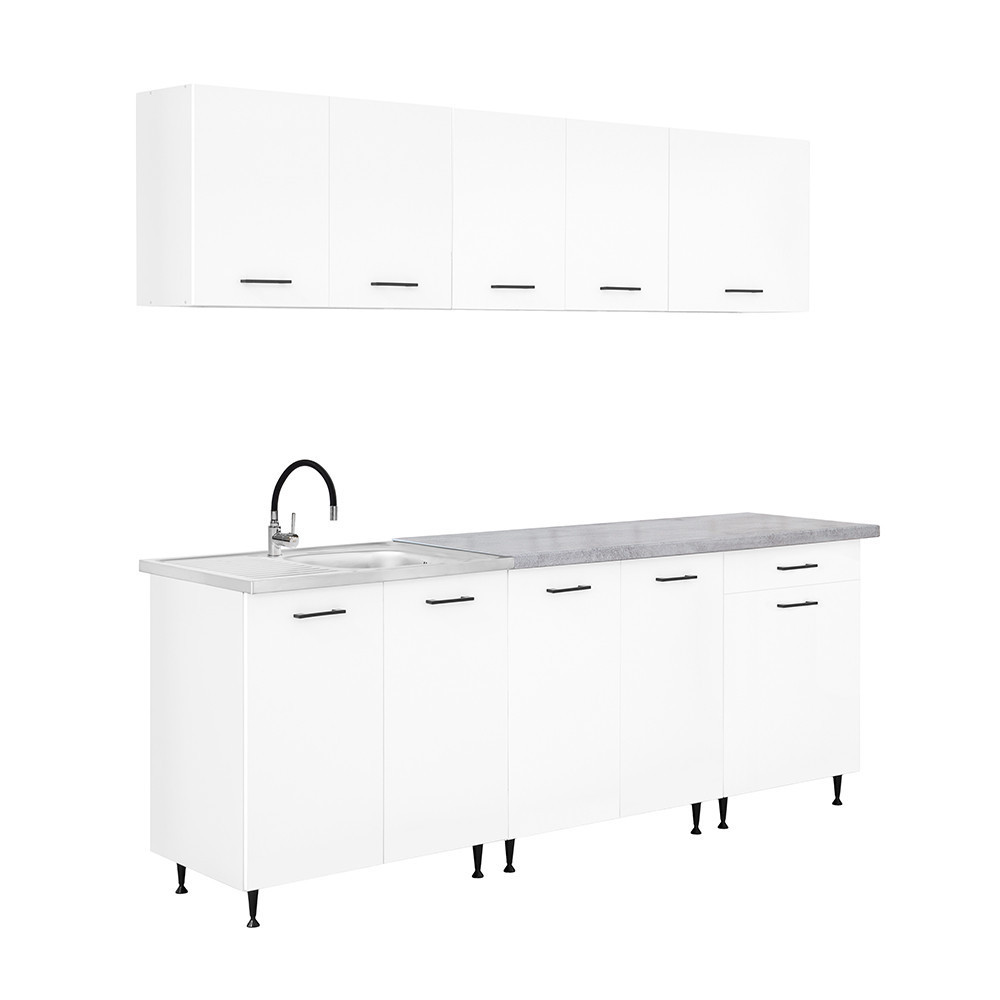 A Leziter Primo 220 konyhabútor fehér korpusszal és Chromix tölgy munkalappal könnyen illeszkedik a modern otthonok világos, letisztult enteriőrjébe. Harmonikus színvilága friss, tágas hatást kelt, így ideális választás kisebb és közepes méretű konyhákhoz. Átgondolt elemkiosztása praktikus, jól szervezett mindennapi használatot kínál, miközben egységes, rendezett összképet biztosít.