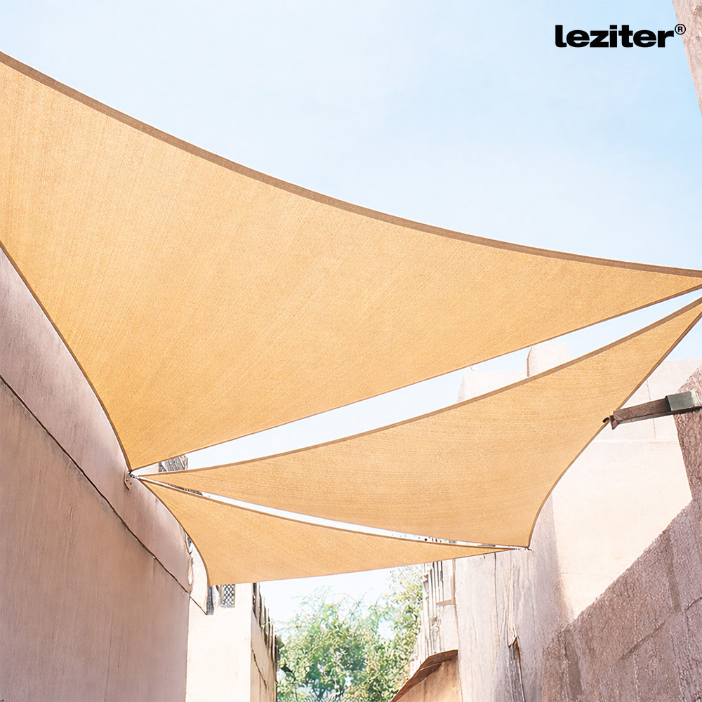 A háromszög alakú 3x3x3 méteres bézs, beige színű napvitorla kiválóan alkalmas arra, hogy árnyékot biztosítson a kertben, teraszon, medence körül vagy bármilyen más kültéri területen. Az ilyen típusú napvitorlák gyakran használatosak kávézók, éttermek és szállodák teraszain, ahol ügyfelek kényelmesebben élvezhetik az ételeket és italokat, miközben védik őket a napsütéstől. Emellett a napvitorlák csökkentik a hőmérsékletet, így hozzájárulnak a kellemesebb, egészségesebb kültéri élményhez. A napvitorla használható otthoni vagy kereskedelmi célokra egyaránt, és ideális választás azoknak, akik szeretnének egy modern és esztétikus árnyékolót, amely könnyen telepíthető és eltávolítható.