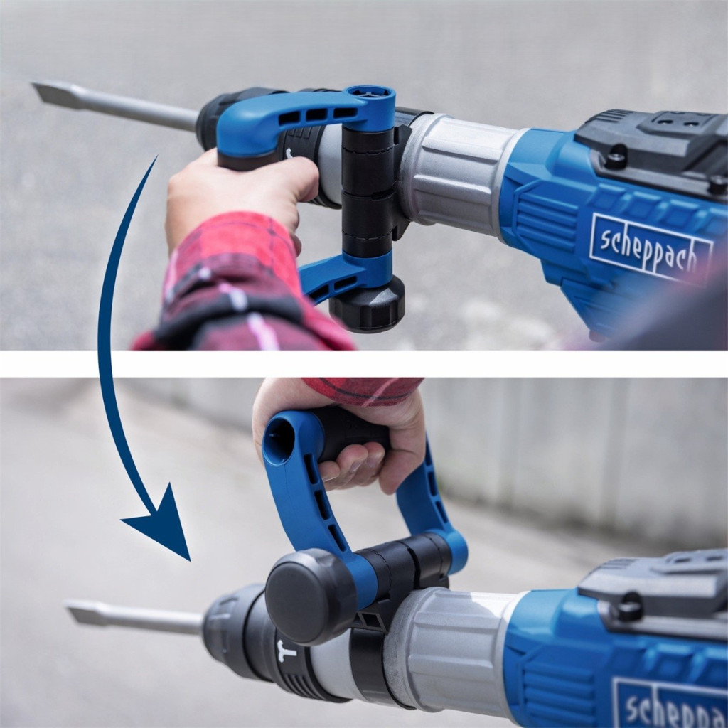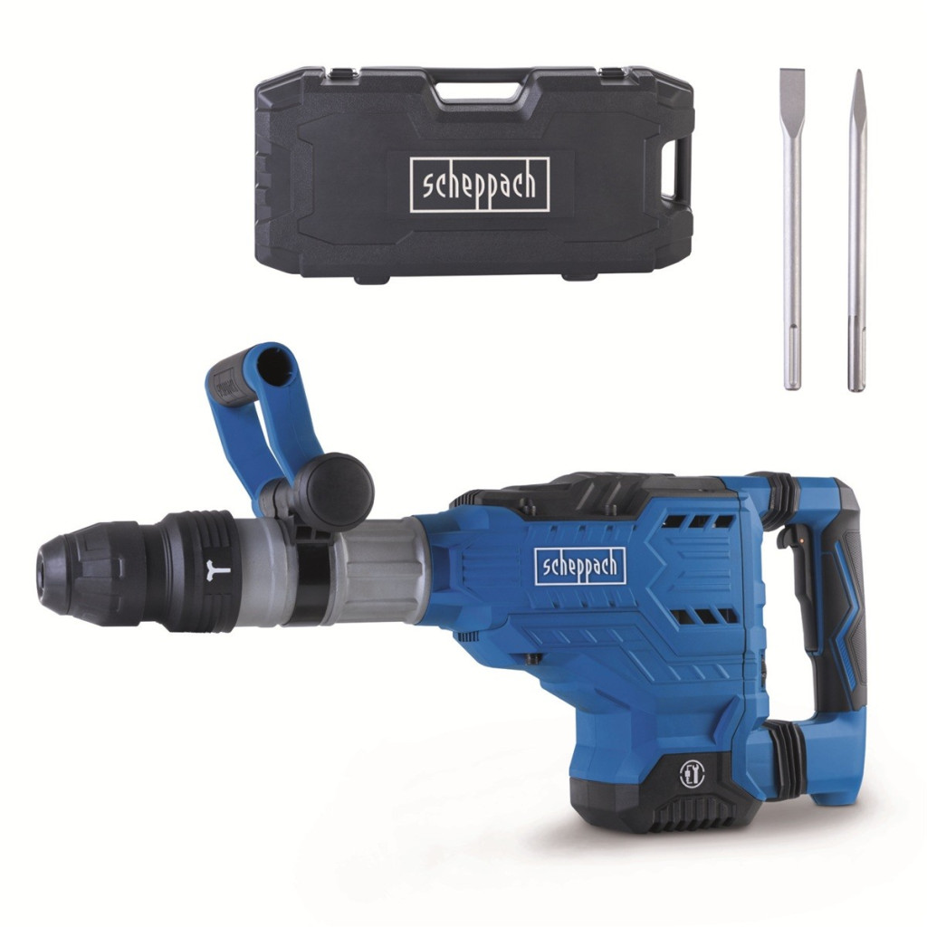 A Scheppach AB 2000 a legerősebb bontókalapács 60 J ütésenergiával. Kiválóan alkalmas közepes és nehezebb bontási munkákhoz a beton, tégla, kő és egyéb építési anyagoknál. A modern konstrukciós kialakítás számos funkcionális és kényelmi elemmel van kiegészítve: csúszásgátló, rezgéscsillapított fogantyú, szerszámhasználat nélküli 360°-ban elfordítható markolat, 12 pozícióba állítható vésőszár, 6 fokozatba állítható ütésfrekvencia, folyamatos munkavégzést lehetővé tevő reteszelhető kapcsoló, SDS MAX befogás, 3 m-es tápkábel, vagy a robusztus, kerekekkel ellátott koffer. Az erős, 1700 W—os motor kiemelt hővédelemmel van ellátva. A 30 mm-es hatszög tokmány könnyű vésőszár cserét tesz lehetővé és meggátolja annak átforgását. A gép standard tartozéka még a kenőzsír, tartalék szénkefék, imbuszkulcs, egy lapos és egy hegyes vésőszár.