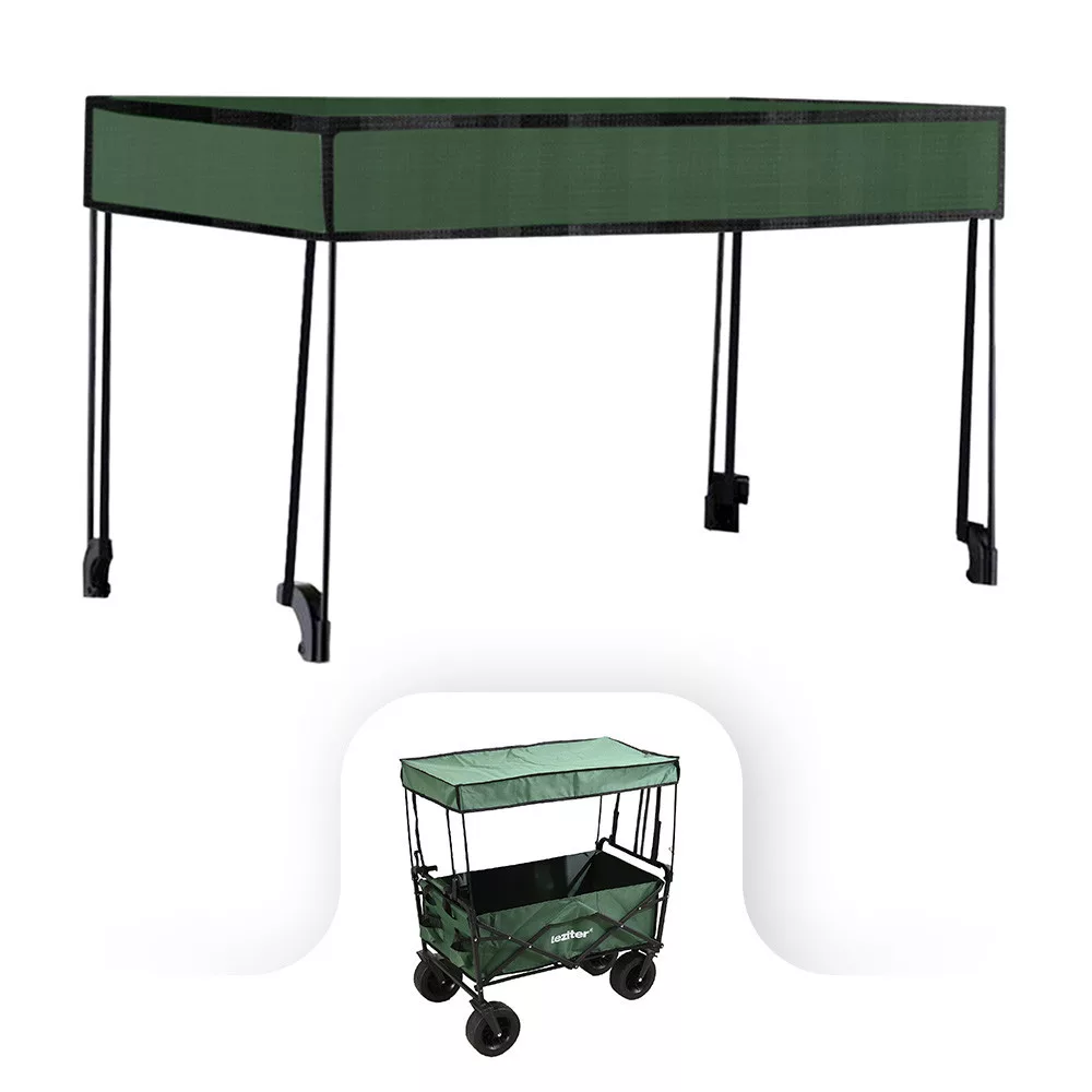 Szerezze be ezt a praktikus, időjárásálló árnyékoló tetőt, amely tökéletes kiegészítője az összecsukható prémium kerti strandkocsi zöld modellnek!
