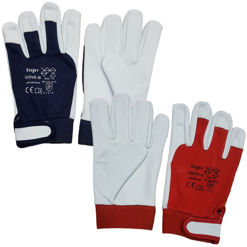 pamut kézhát, gumírozott mandzsetta tépőzárralPuha kecskebőr védőkesztyű.Tulajdonságai:Tenyere puha kecskebőr.Pamut, szellőző kézhát.Ujjperc védelem, bőr borítással.Gumírozott, tépőzáras mandzsetta.EN 388:2016Védelmi szintek: 2121X