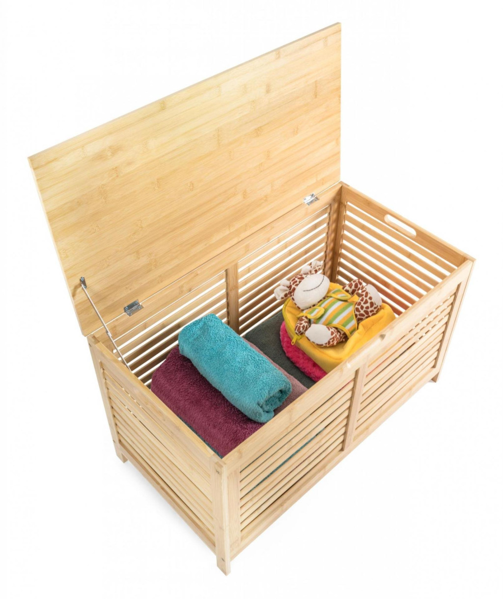 Ez a bambusz doboz nagyszerű kiegészítője a hálószobának, a gyerekszobának, a nappalinak vagy a folyosónak. 10 kg belső teherbírású tárolóhelyet kínál takarók, párnák vagy szezonális ruhák tárolására, a gyerekek elhelyezhetik kedvenc játékaikat, az előszobában pedig szezonális kiegészítőket, esernyőket és hasonlókat.
