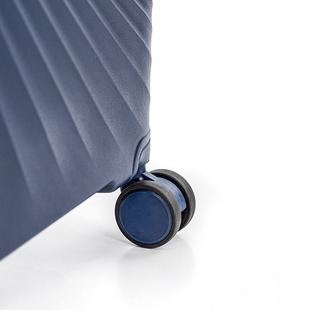 A négy dupla kerék halk és gördülékeny mozgást biztosít mindkét bőrönd esetében, bármely irányban. A kabinbőrönd levehető kerekei lehetővé teszik, hogy az a legtöbb légitársaság kézipoggyász-méret előírásainak is megfeleljen – ideális választás repülős utakhoz.