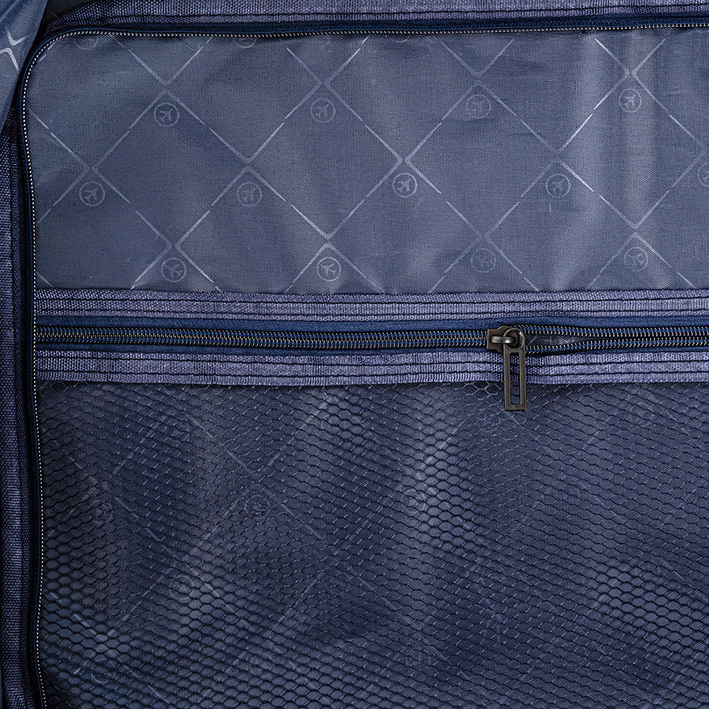 A cipzáras elválasztó rekesz és a rugalmas rögzítőpántok segítenek a ruhák és egyéb csomagok rendszerezésében. A belső kialakítás mindkét bőrönd esetében egyszerű, jól átlátható és könnyen pakolható.
