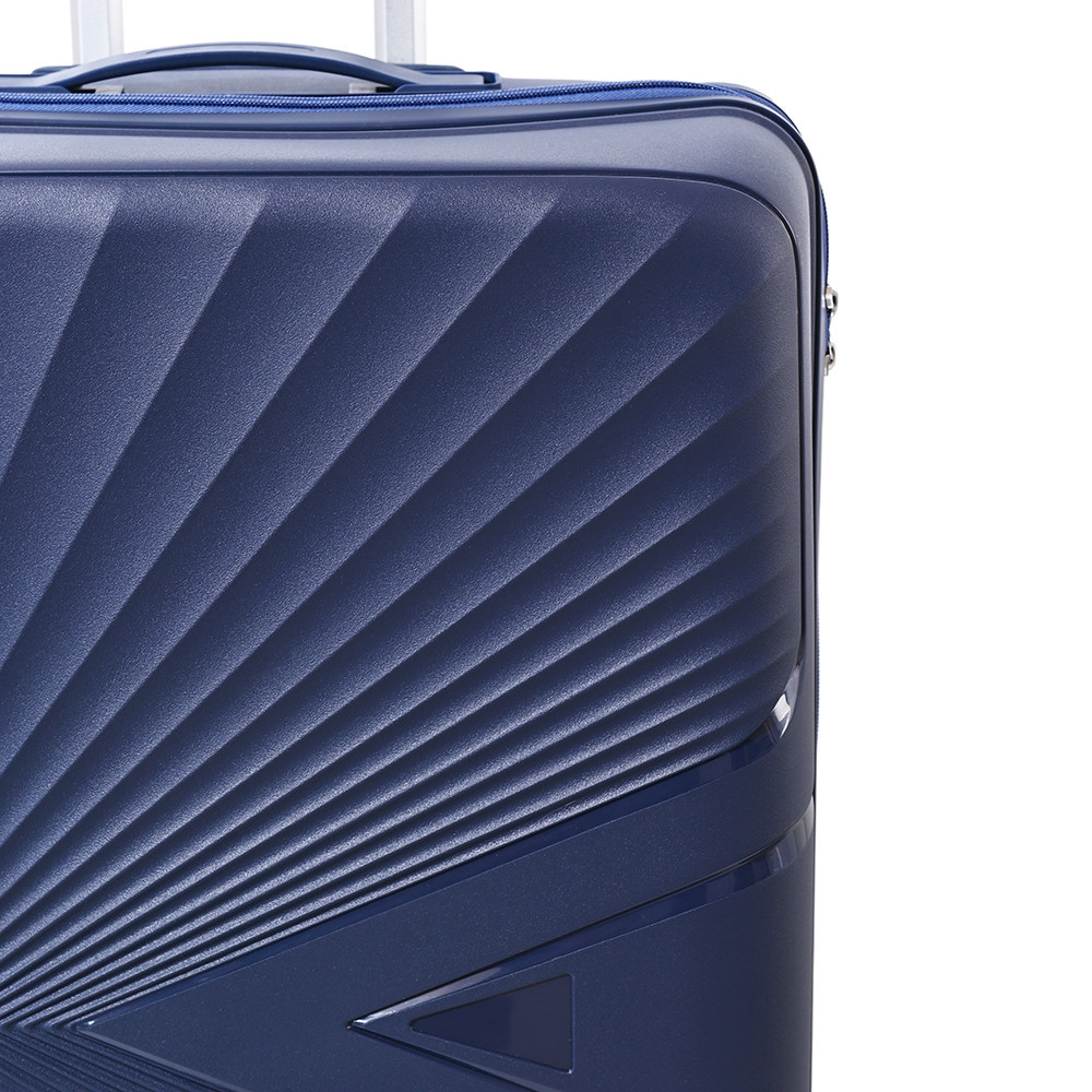 A bőrönd anyaga masszív, mégis könnyű, ami ideális kombináció a gyakran utazók számára. A strukturált, sugárszerű minta nemcsak látványos, hanem ellenállóbbá is teszi a külsőt a karcolásokkal szemben.