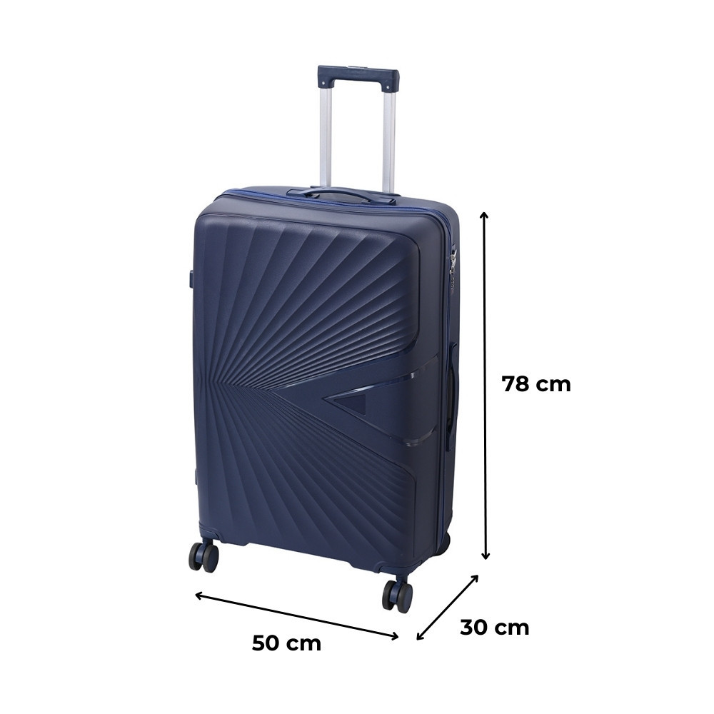 A Leziter TraveLux Endure nagy bőrönd mérete 50x78x30 cm, így tökéletes választás hosszabb utazásokhoz, nyaralásokhoz, családi utazáshoz is. Elég helyet biztosít ahhoz, hogy minden elférjen – anélkül, hogy túlméretezett lenne. Sötétkék árnyalata elegáns és időtálló, így stílusosan utazhatsz, akár repülővel, hajóval vagy autóval indulsz útnak.