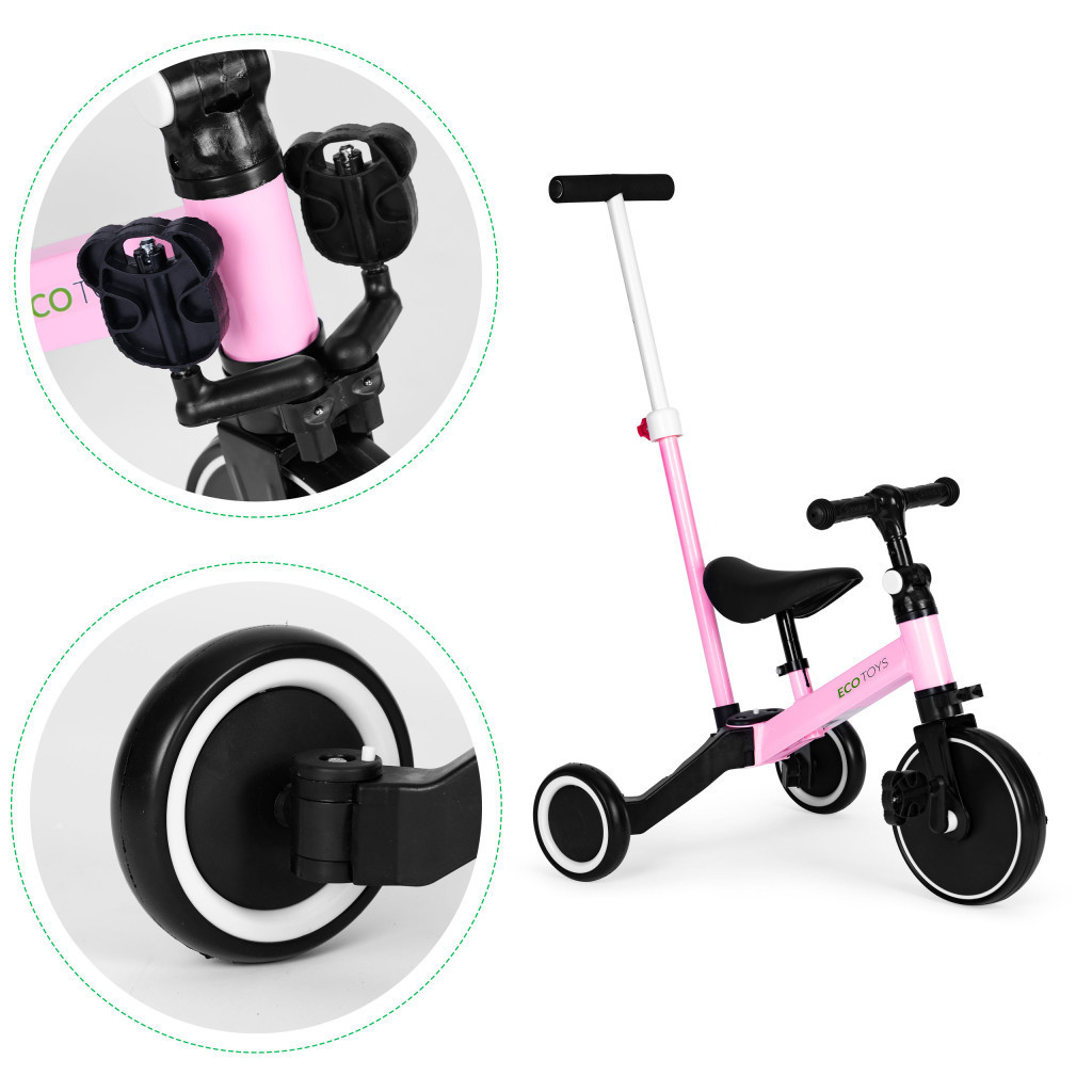 A futóbicikli hagyományos, pedálossá alakításának lehetősége azt jelenti, hogy a gyermek elkezdheti tanulni az ilyen típusú kerékpárok biztonságos vezetését. A puha nyereg és a csúszásmentes fogantyúk órákon át tartó kényelmes szórakozást biztosítanak. A kerékpár kerekei >EVA-ból készültek, amelyek szúrásállóak, így otthon és sétákon is használhatók.