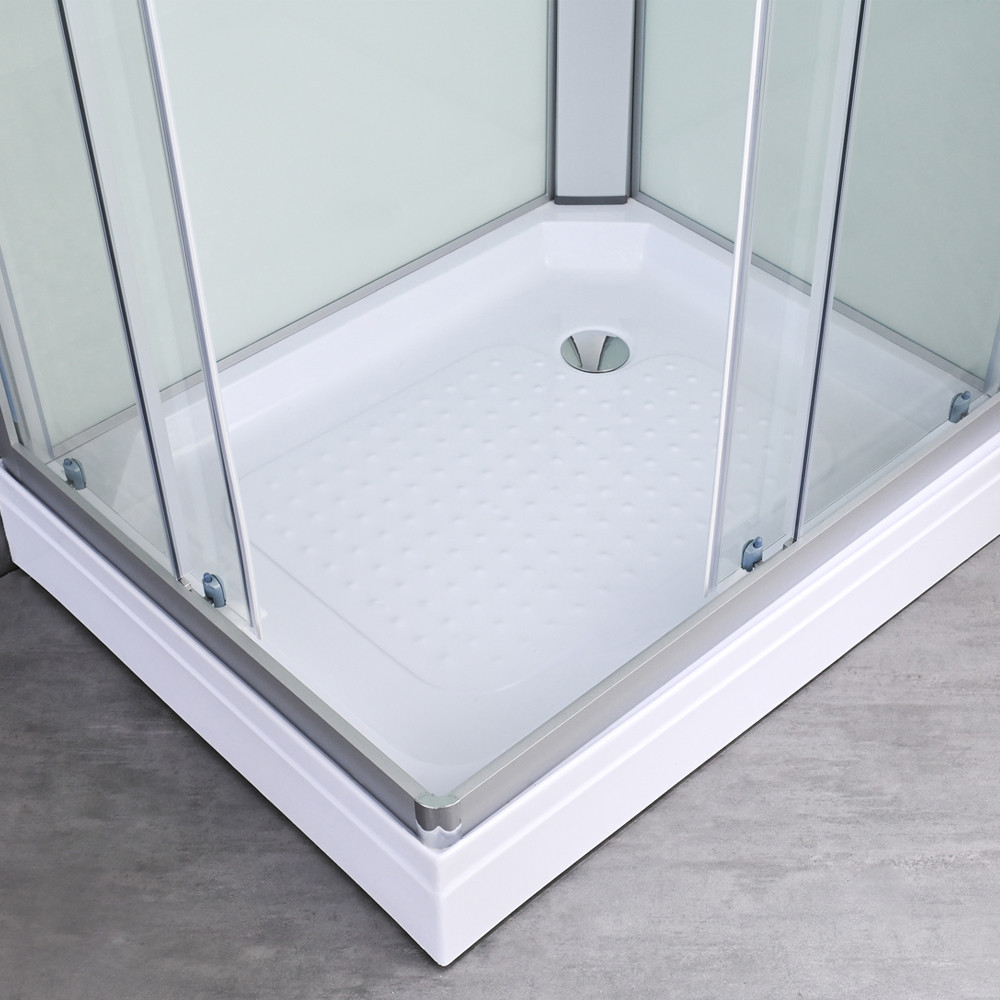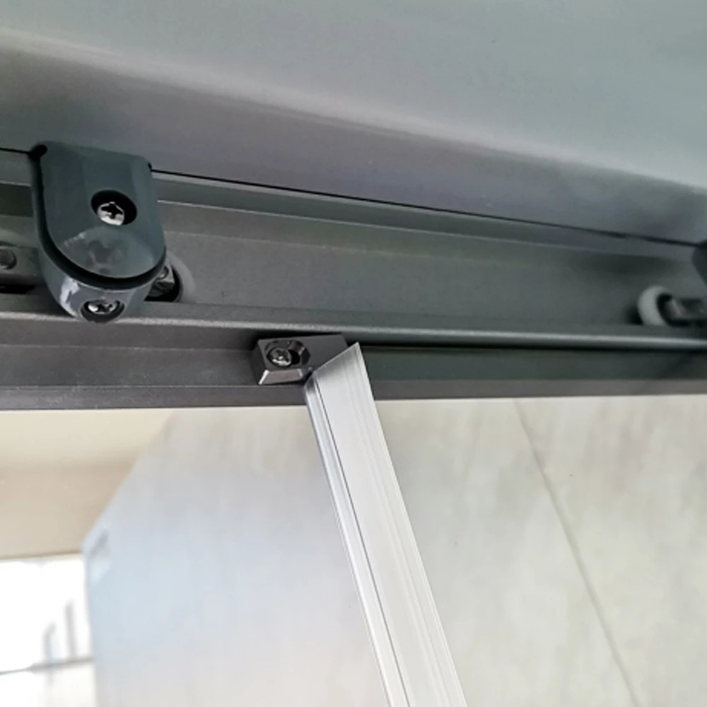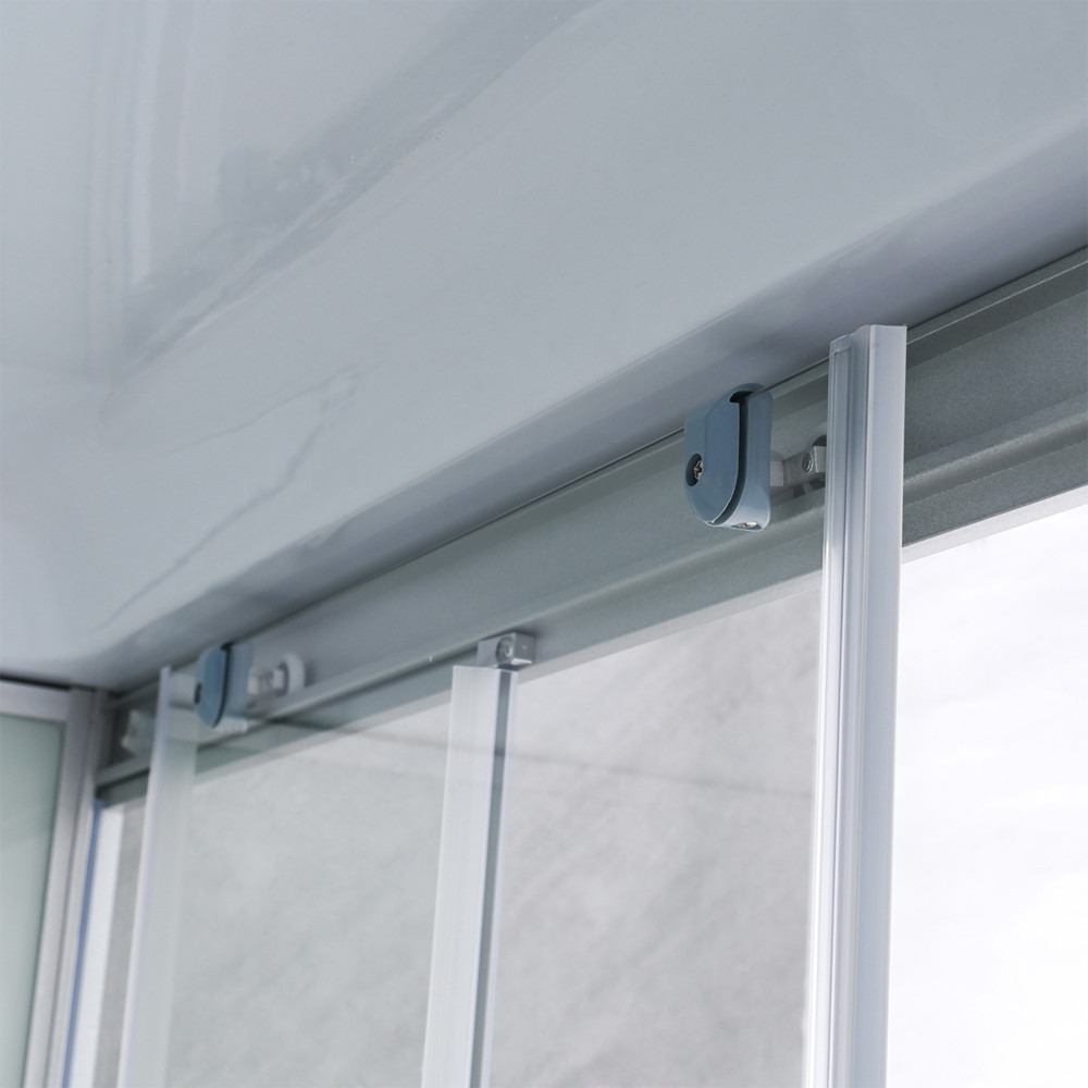 Az 5 mm vastag, edzett víztiszta biztonsági üveg elegáns megjelenésű, miközben ellenáll az ütődéseknek és hőmérséklet-változásoknak. Törés esetén apró, tompa szilánkokra esik szét, így családok számára is biztonságos. Az állítható alumínium fali profil lehetővé teszi a pontos illesztést még enyhén ferde falak esetén is, ezáltal ideális régebbi építésű otthonokba is.