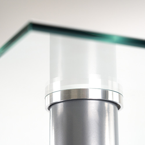 Az asztallap 8 mm vastag, hőkezelt edzett üvegből készült, amely nemcsak esztétikus, hanem biztonságos és ellenálló a karcolásokkal, kisebb ütődésekkel szemben is. A rozsdamentes acél lábak biztosítják a stabilitást, míg az aljukon található padlóvédők megakadályozzák a burkolat sérülését.