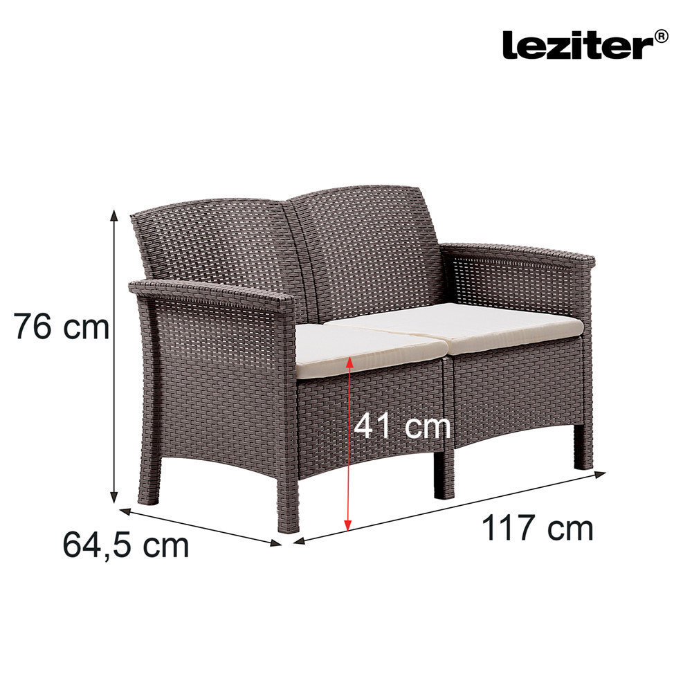 A Venus kerti kanapé a magasabb kategóriás kültéri bútorok között is kiemelkedik. A 117 x 64,5 x 76 cm-es méretével és 41 cm-es ülőmagasságával tökéletes választás két személy számára, legyen szó egy délutáni kávézásról vagy egy meghitt beszélgetésről.