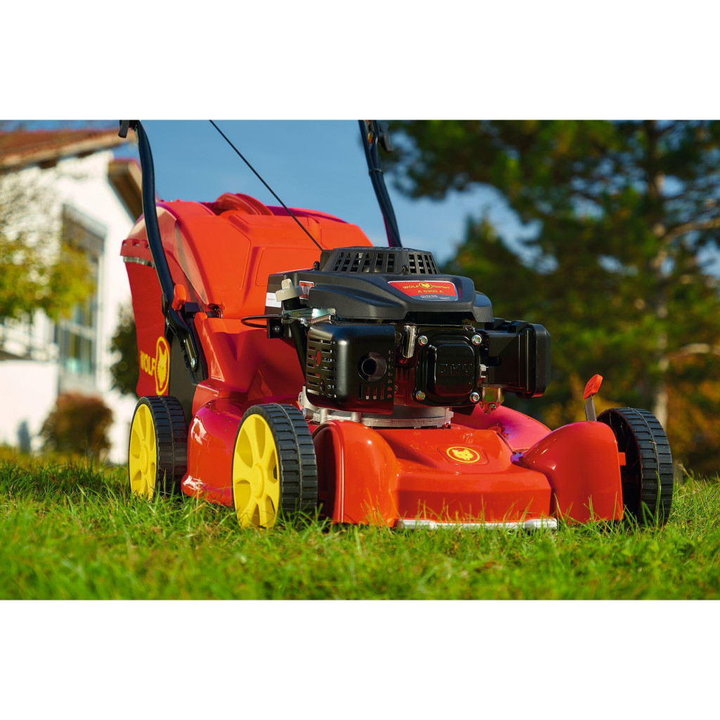 Ajánlott: 800 m2-igVágószélesség: 46 cmMotor: Wolf-Garten OHV 45, 140 cm3, 2,1 kw, 2800/minFűnyíróház: acélSúly kb.: 32 kgFűgyűjtő: 60 lVágásmagasság állítás: 2 karos, 6 fokozat, 2,8-9,2 cmÜzemanyagtartály: 1 lKerék méret e/h: 180 mm/ 200 mmMulcskészlet: opcionális nem tartozék!Lehajtható és állítható magasságú tolókar, puha markolattalGyűjtőtelítettség jelző3in1: hátsó kiszórás, gyűjtés és mulcsozás