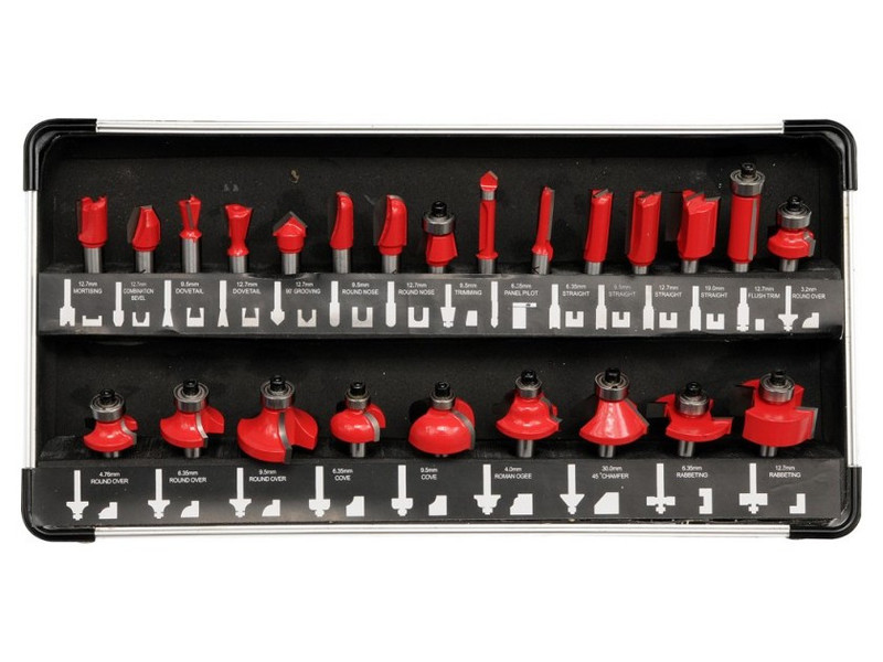 Pontosan készült, nagy sebességű fa vágók. 8 mm-es zsír, profilozott vágólapokkal felszerelt fejek, yg6X szilícium-karbidból készültek. Ezüsttel forrasztva, mérettűrés 0,08 mm. Az él megmunkálásához csapágyakkal felszerelt vágók, amelyek megkönnyítik a marógép kezelését. Egy 25 darabos vágókészlet, amelyet egy funkcionális bőröndben gyűjtöttek össze, amely üveggel van ellátva a ellenőrzés és a megfelelő szerszám gyors kiválasztása érdekében. Fával és egyes műanyagokkal való precíz megmunkáláshoz bányavágókkal. Használati figyelmeztetések: Figyelem! Mindig használjon személyes védőfelszerelést a munkavégzés során.