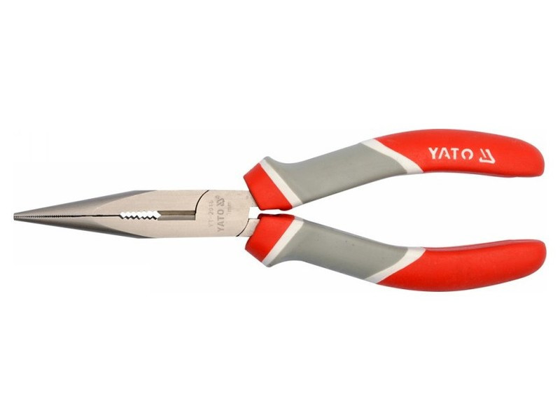 Egyenes hosszított fogók 160 mm hosszúsággal a YATO-tól. A fogantyúkat kényelmes műanyag háromkomponensű betétekkel borították.