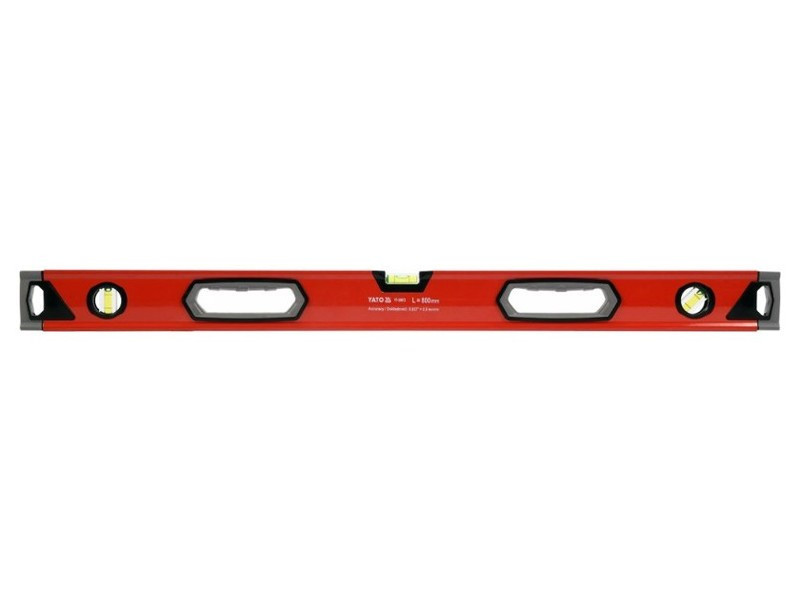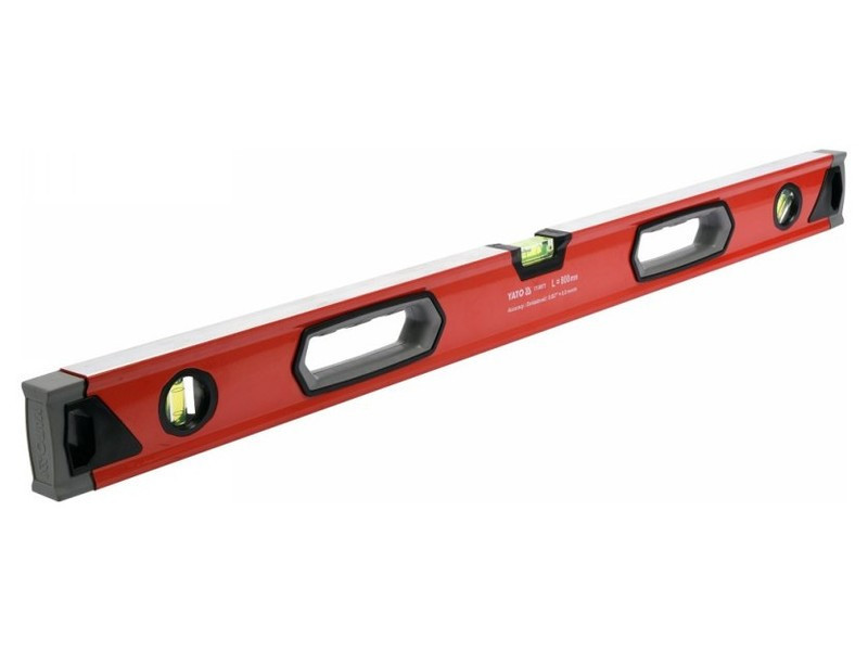 Alumínium szintező, 800 mm, 3 libella, két fogantyú, 0,5 mm/m pontosság Stabil alumínium profilból készült Két precíziósan megmunkált mérőfelület Két rugalmas műanyaggal bevont fogantyú A végpárnák rugalmas műanyaggal vannak bevonva, hatékonyan védve a szintezőt az esetleges ütések hatásaitól Az oldalakat porbevonatos festék réteg védi A szintező kijelzésének pontossága 0,5 mm/m Libellák: 3 akril üvegből készült libella A láthatóságot javító, sárga folyadékkal töltve Akril üveg libellával töltve. Függőleges, vízszintes és 45°-os szög megjelenítése Ütéselnyelő műanyaggal ellátva Elérhető modellek: 60, 80, 100 és 120 cm.Professzionális építőipari és felújítási munkálatokhoz, mosógépek, hűtőszekrények, bútorok stb. pontos helyzetbe állításához.