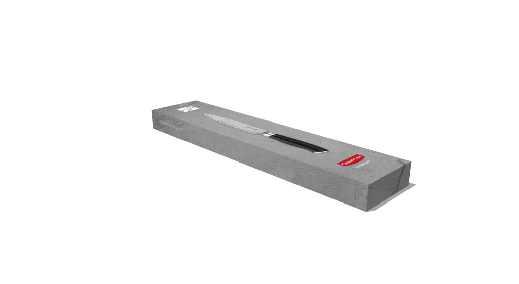 A kés markolata extra erős és ellenállót laminált anyagból készült, ún. Micrata. A micrata egy rétegelt szerkezetű, műgyantával kiöntött alapanyag, melyben nem üvegszál, hanem természetes alapanyag biztosítja a rétegeket. Így készült ez az erős,kemény markolat, mely nem enged az idő múlásának. A kés sima, egyenes, tiszta kialakítása minden konyha díszévé válik.