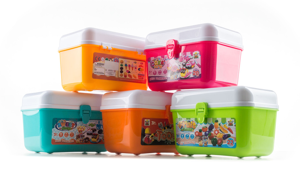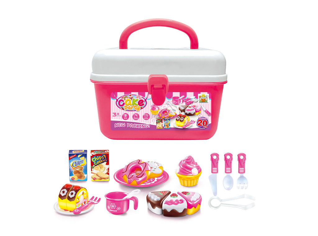 A bőröndben gyönyörű színes műanyag süteményeket, fánkokat, tekercseket, dobozokat az alapanyagokkal, edényeket és evőeszközöket talál. Egyszóval mindent, amire egy csukrászboltban szükség van. A bőröndnek fogantyúja is van, mely segítségével a kis cukrász bárhová magával viheti a cukrászboltot.